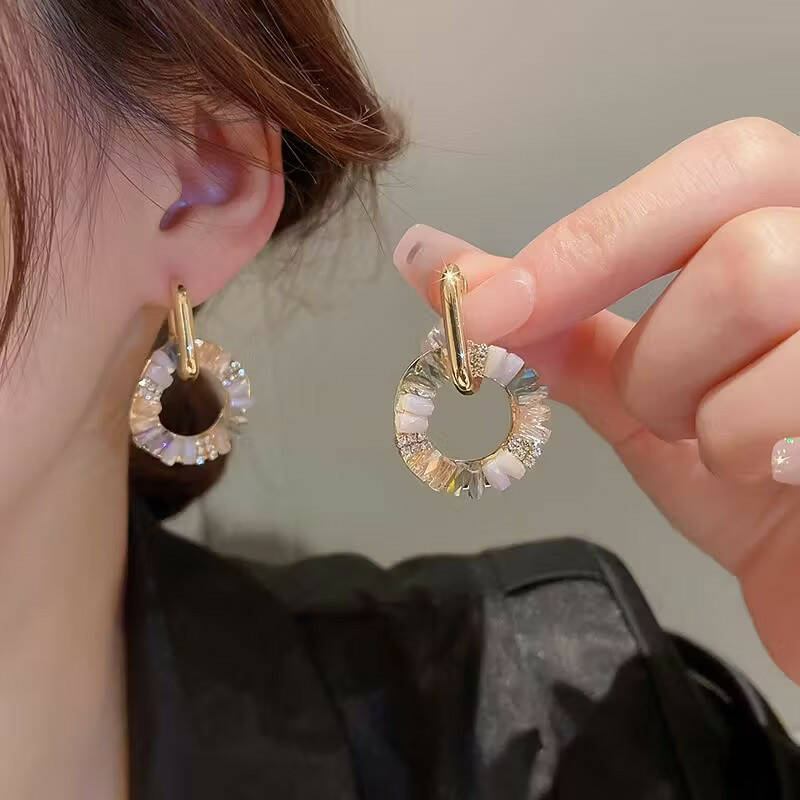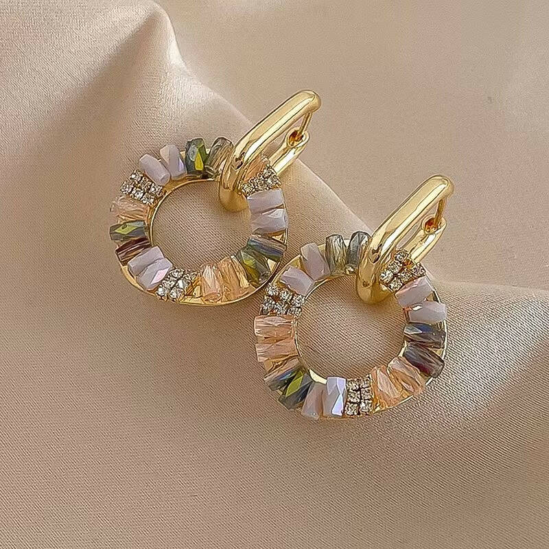 Гармонійне поєднання золотистої основи та сяючих вставок робить сережки яскравим акцентом як у повсякденному, так і у вечірньому образі. Сережки виготовлені зі сплаву цинку, відрізняються міцністю та комфортною посадкою. Надійна застібка забезпечує зручність під час носіння.