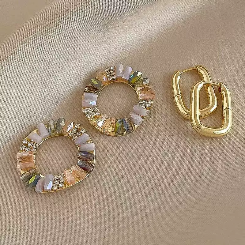 Сережки пара сережки-хупи золотисті французький дизайн зі стразами жіноча біжутерія сережки комплект цинковий сплав