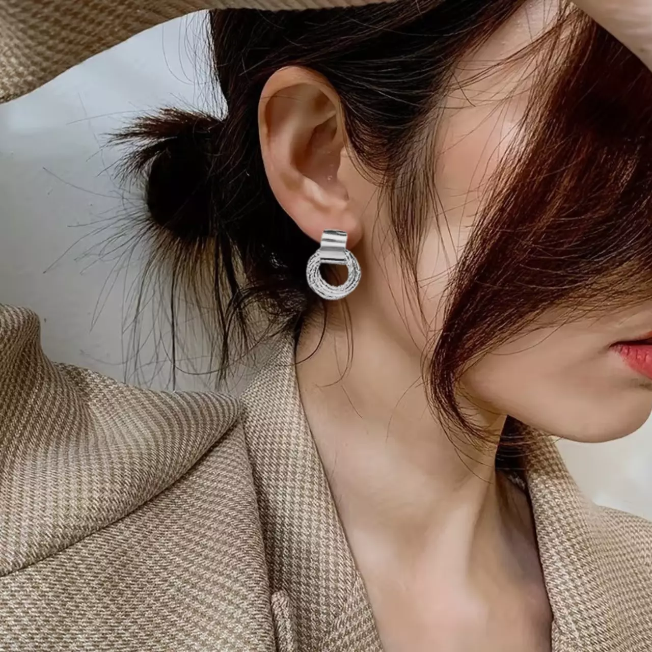 Елегантні жіночі сережки у сріблястому кольорі з геометричним
