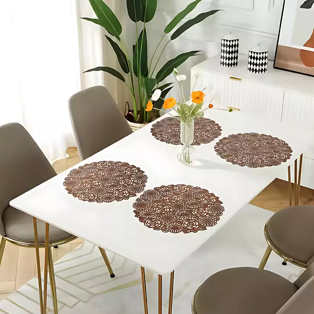 Серветки розраховані на тарілки, чашки, каструлі та інший посуд. У комплект входить два сервірувальних килимка діаметром 38×38 см. Відмінно підійдуть для кухні, їдальні, вітальні або дачі.