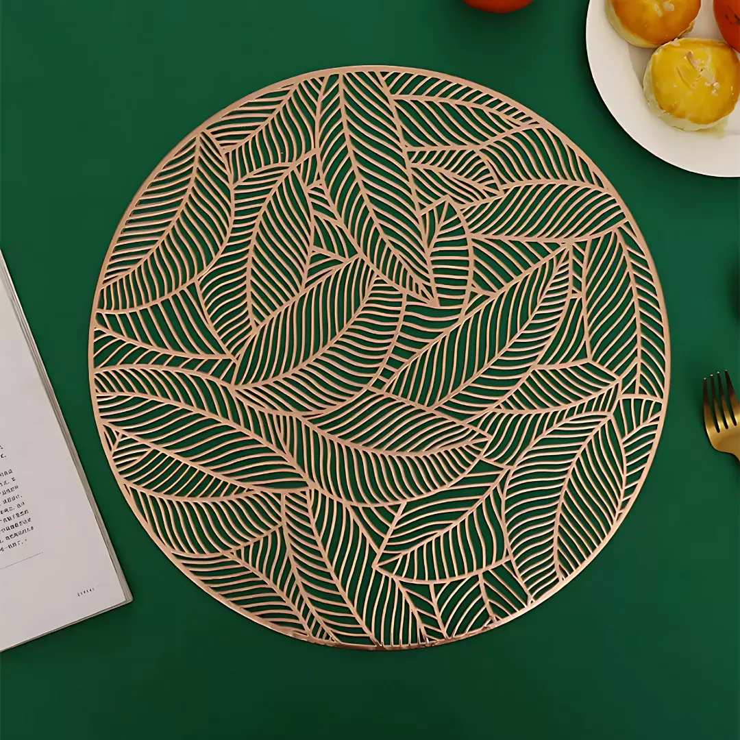 Сервірувальна серветка під гаряче кругла 38х38 см, килимок сервірувальний рожево-золотистий набір 2 шт