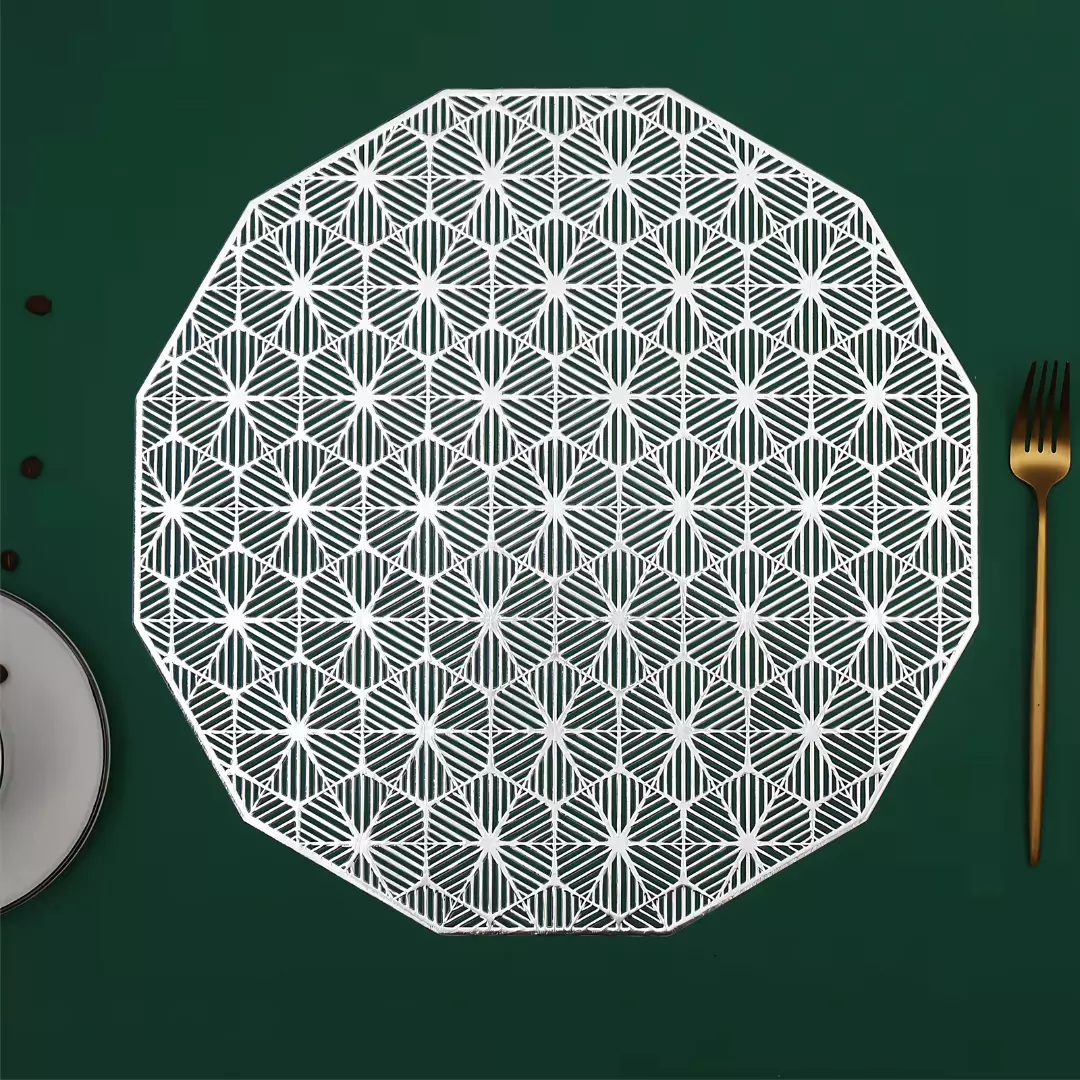 Сервірувальна серветка під гаряче кругла 38х38 см, килимок сервірувальний сріблястий набір 2 шт