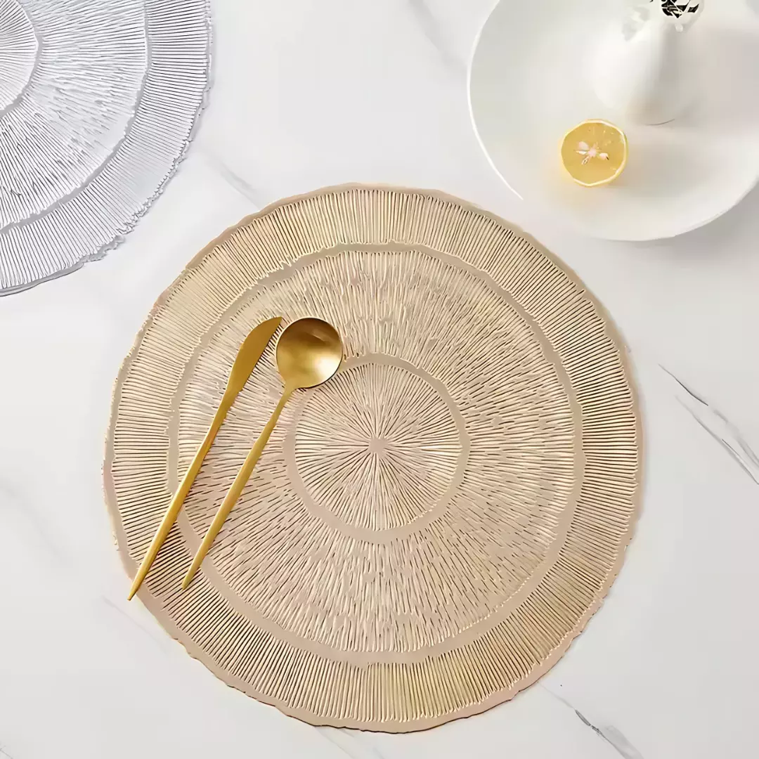 Сервірувальна серветка під гаряче круглая, килимок сервірувальний килимок золотистий набір 2 шт