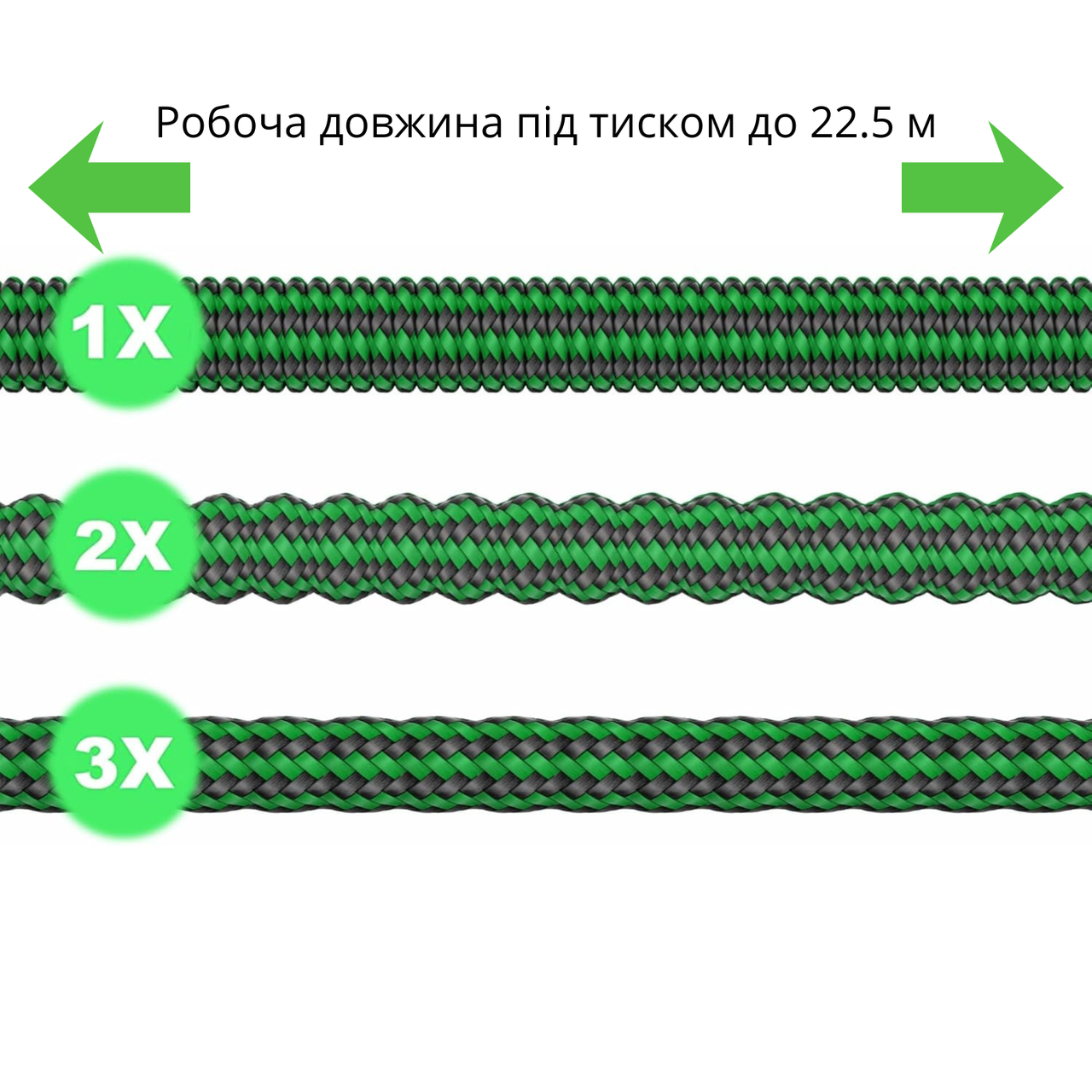 шланг розтягується до 22.5 м, а після вимкнення води автоматично
