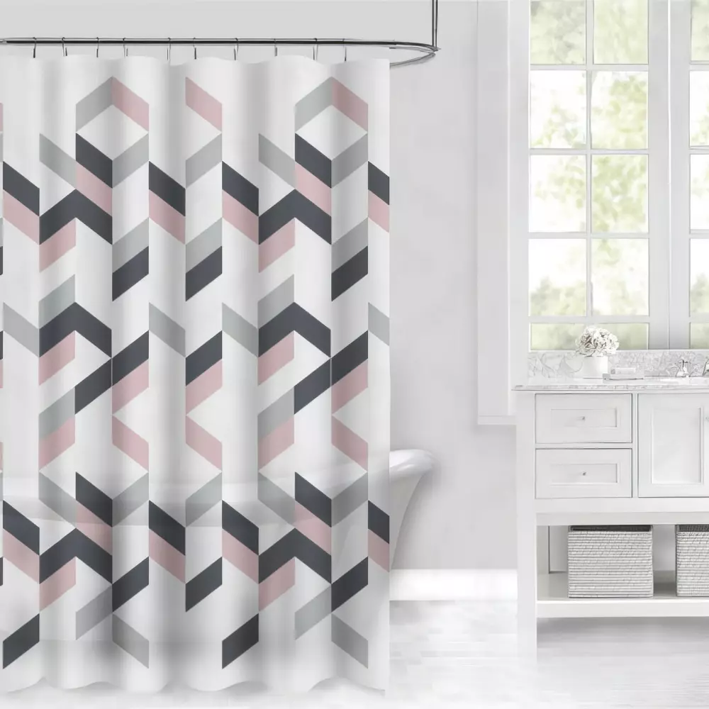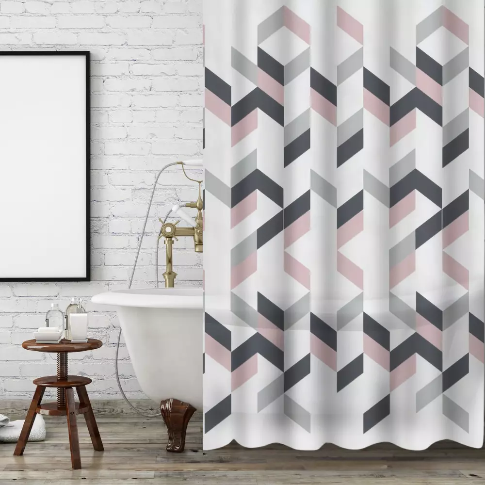 Розмір 180x180 см підходить для стандартних ванн та душових кабін. У комплекті 12 пластикових С-подібних гачків, які забезпечують зручне встановлення та плавне ковзання шторки.