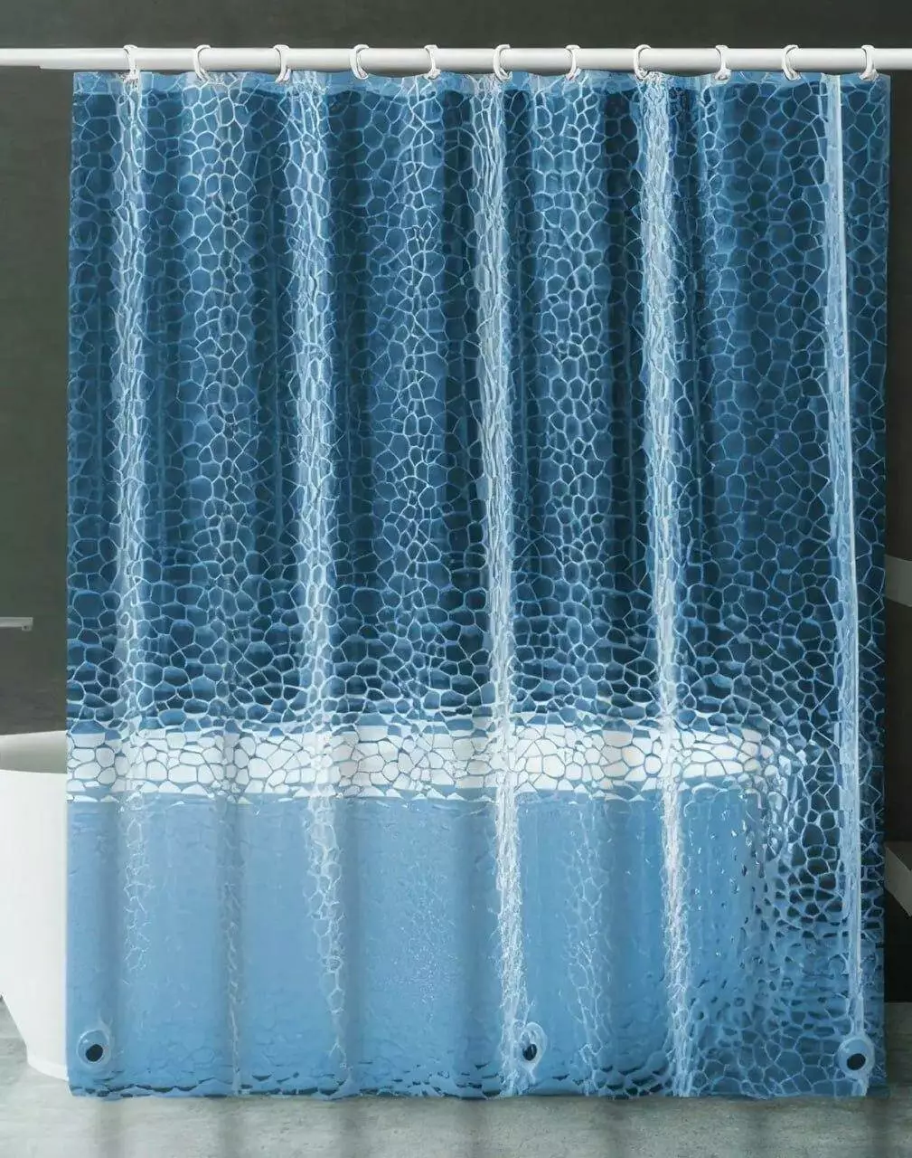 Шторка для душу та ванної кімнати з 3 магнітами-обважнювачами, колір прозоро-блакитний