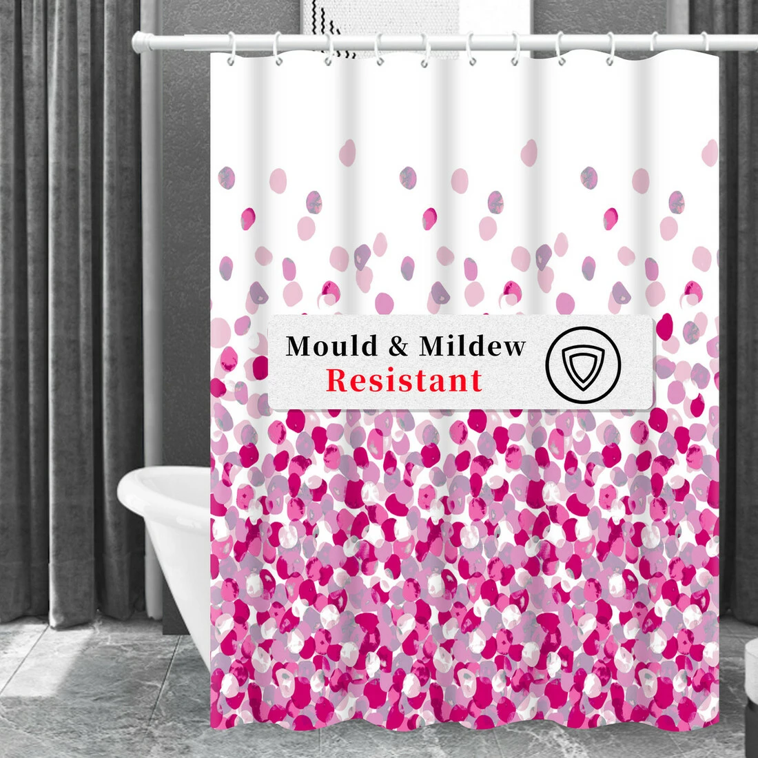 Завдяки водовідштовхувальному матеріалу вода стікає і штора повністю висихає за короткий час. Стійка до плісняви, водонепроникна, антибактеріальна та швидкосохнуча.