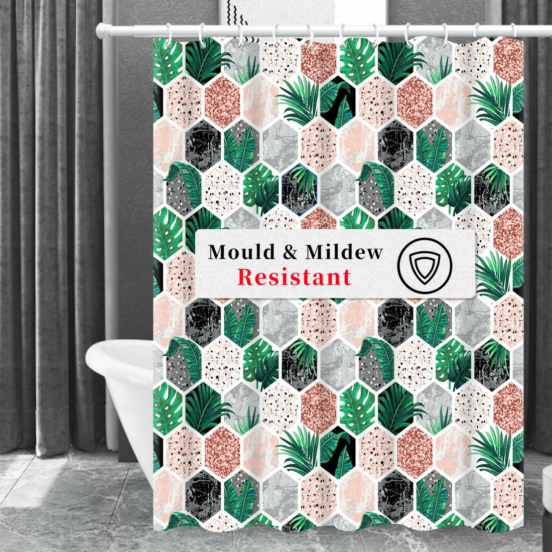 Завдяки водовідштовхувальному матеріалу вода стікає і штора повністю висихає за короткий час. Стійка до плісняви, водонепроникна, антибактеріальна та швидкосохнуча.