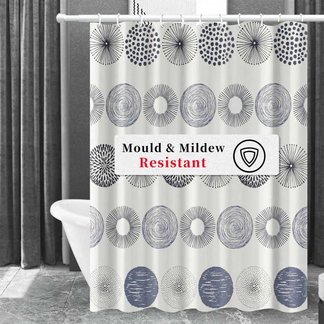 Завдяки водовідштовхувальному матеріалу вода стікає і штора повністю висихає за короткий час. Стійка до плісняви, водонепроникна, антибактеріальна та швидкосохнуча.