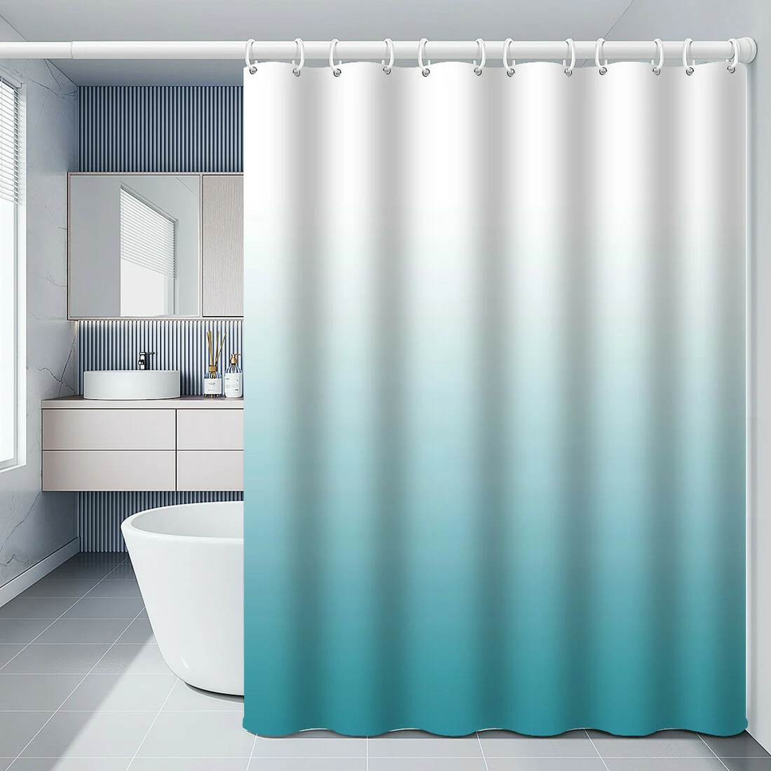 Шторка для ванної кімнати Bathlux 180 x 180 см люкс якість з водовідштовхувальним покриттям, Бірюзовий градієнт
