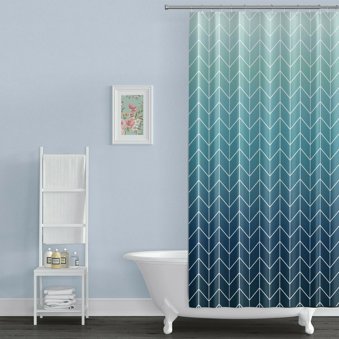 Шторка для ванної кімнати Bathlux 180 x 180 см люкс якість з водовідштовхувальним покриттям, бірюзово-синій градієнт