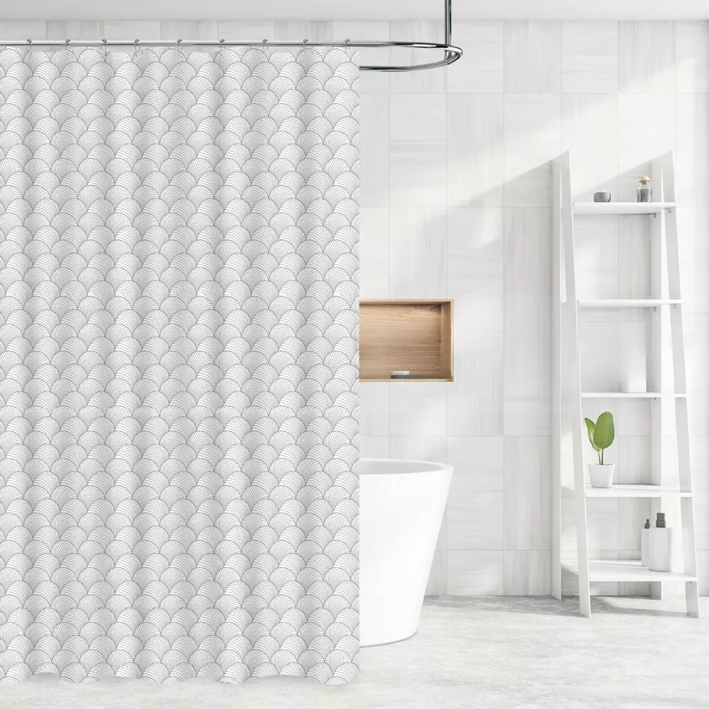 Шторка для ванної та душу 180x180 см, фіранка для ванної кімнати з гачками, біла зі сріблястим візерунком