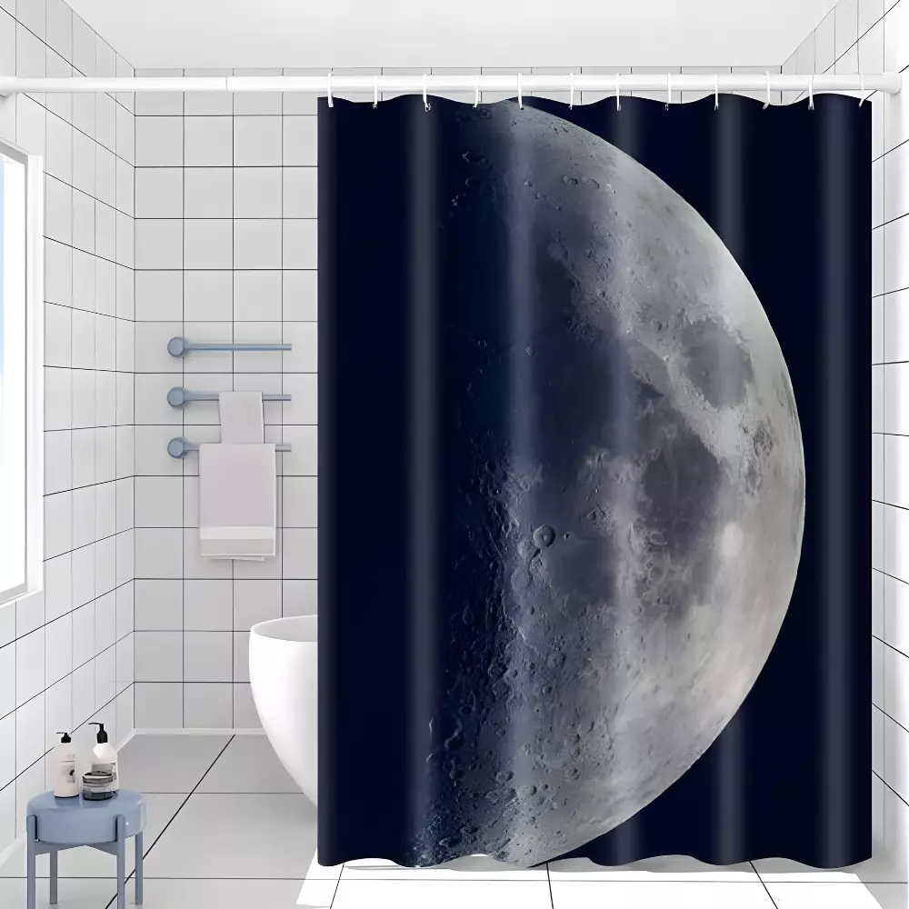Шторка для ванної та душу 180x180 см водостійка, шторка для ванної кімнати з кільцями і гачками, принт місяць