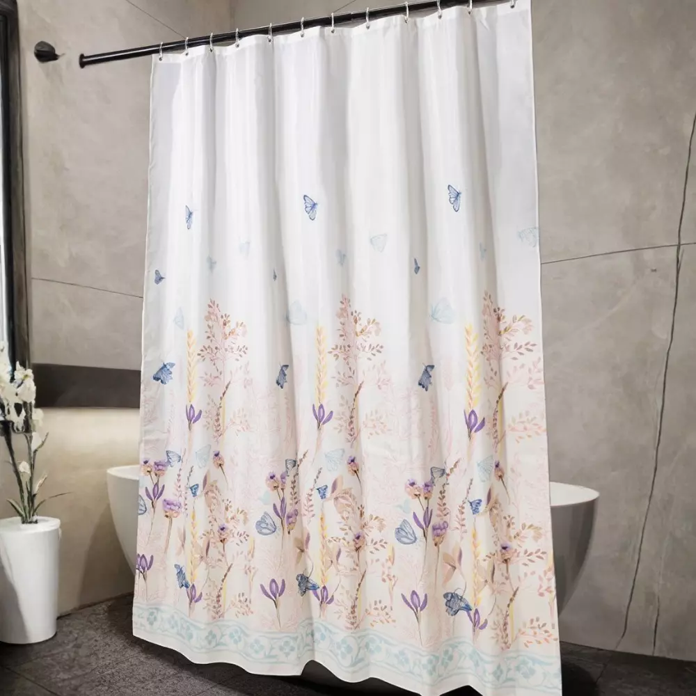 Шторка для ванної та душу з кільцями 180x180 см водостійка, шторка для ванної кімнати з гачками, колір білий