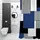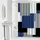 Принт на шторці виконаний у сучасному геометричному стилі. Він складається з великих прямокутників і квадратів різних розмірів, розташованих у строгому порядку. Основні кольори композиції — темно-синій, сірий, білий і чорний. Контрастне поєднання відтінків створює ефект модульного дизайну в дусі мінімалізму та модерну. Такий візерунок надає ванній кімнаті лаконічний, стильний і сучасний вигляд.