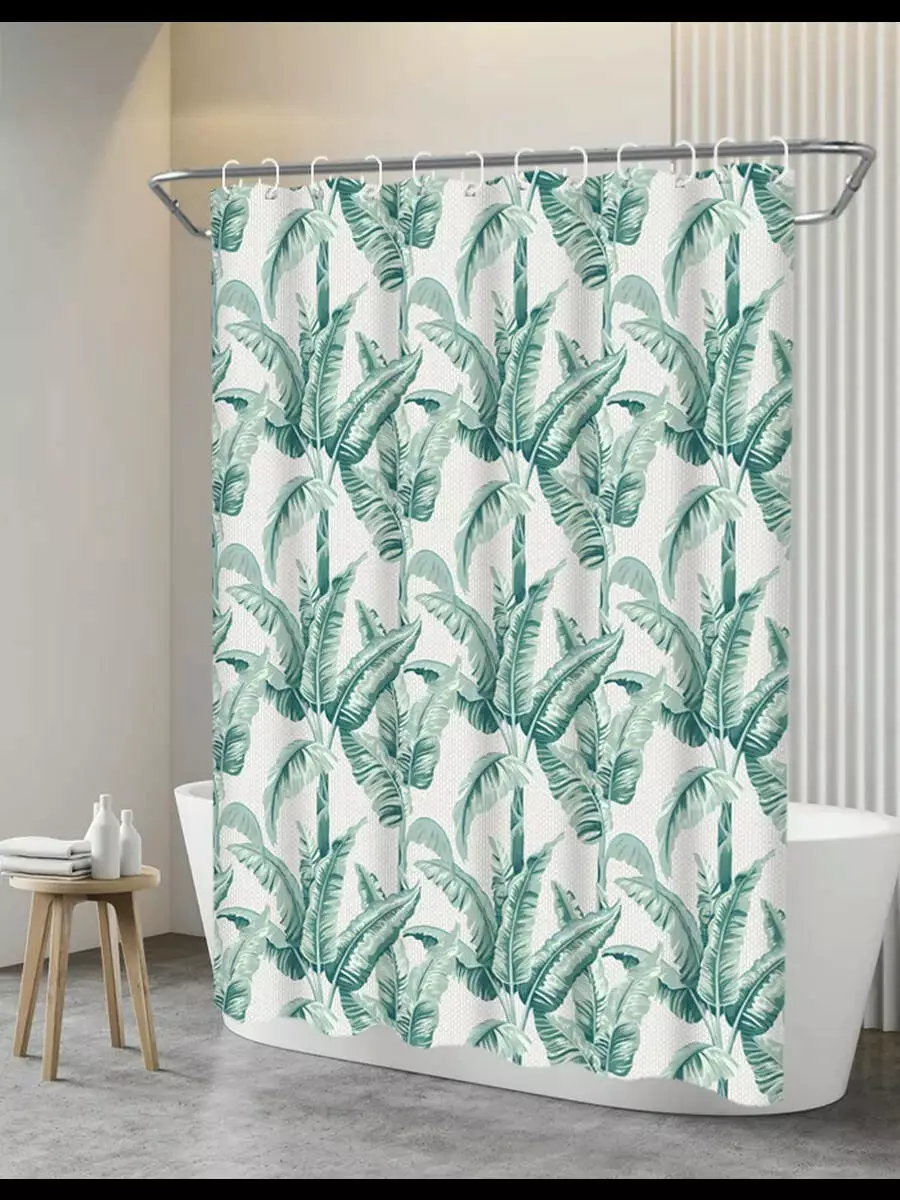 Шторка для ванної та душу з кільцями 180x180 см водостійка, шторка для ванної та душової з гачками, принт бананового дерева