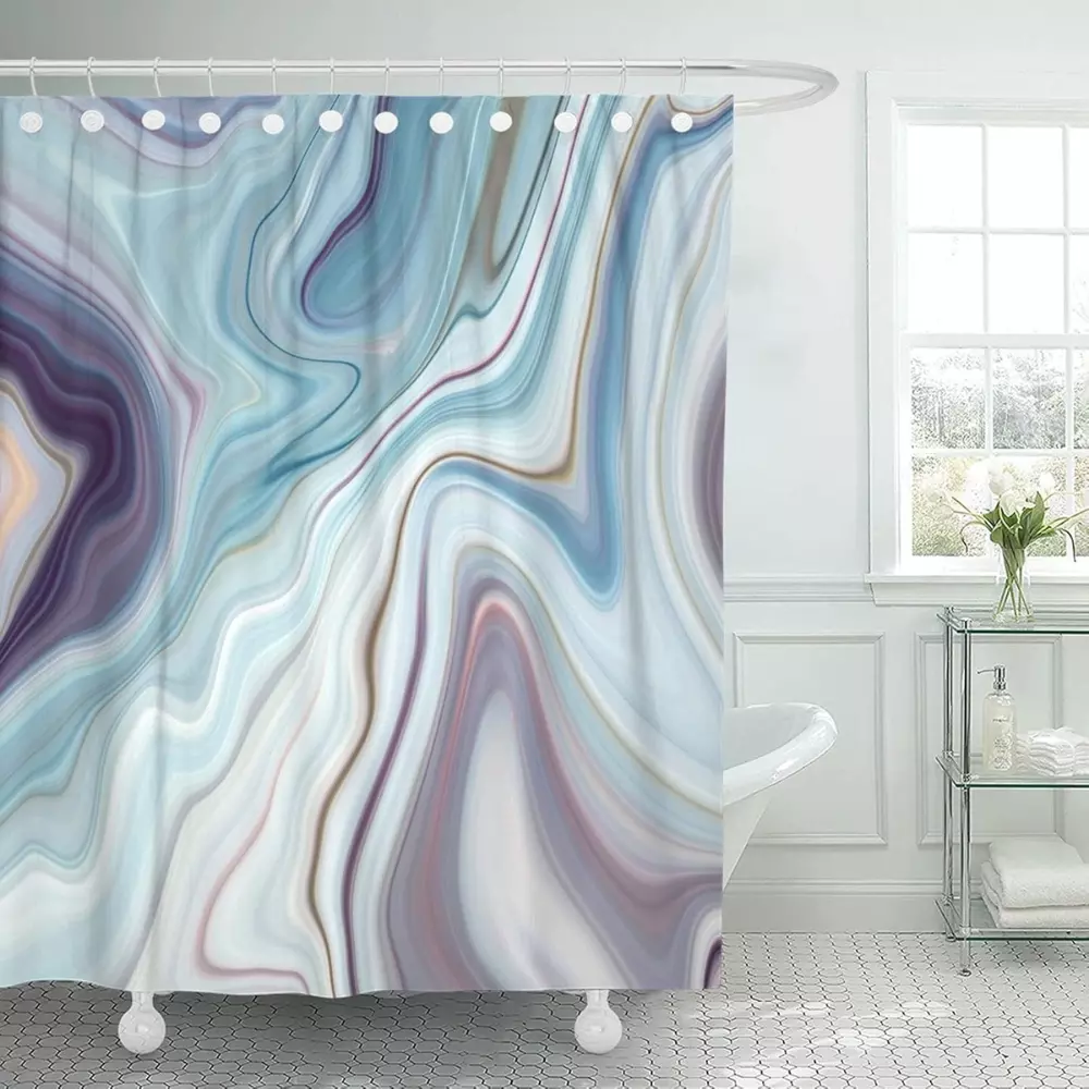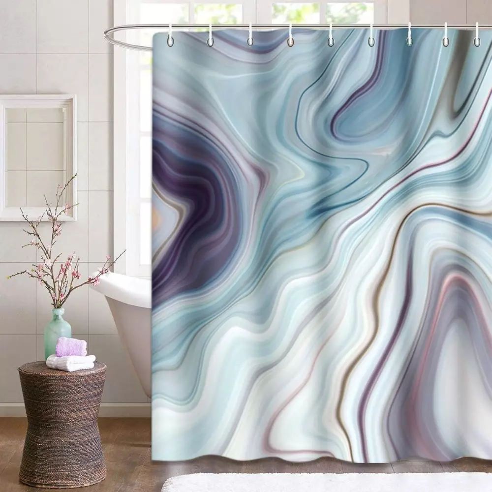Шторка для ванної та душу з кільцями 180x180 см водовідштовхувальна, шторка для душової та ванної з гачками, мармурово-блакитна