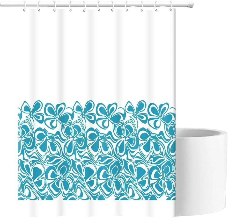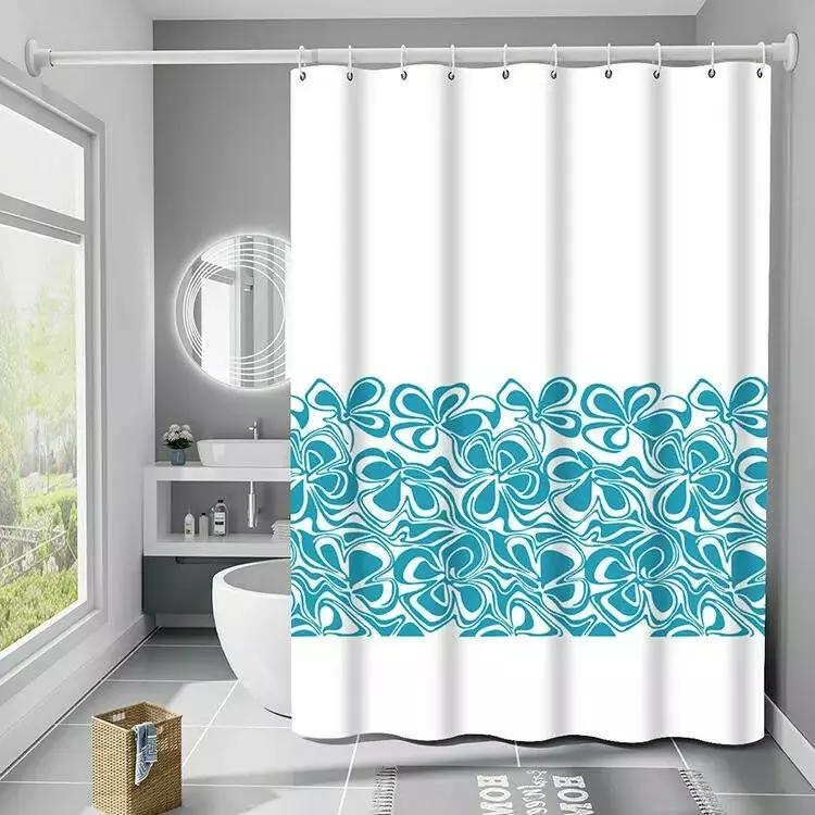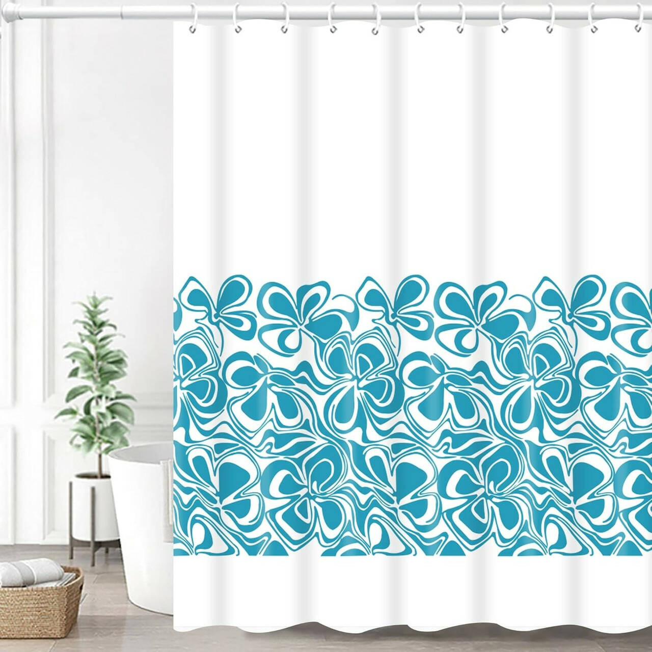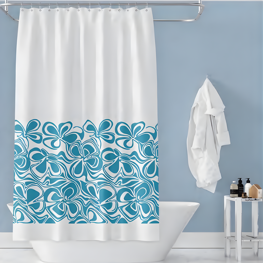 Шторка для ванної та душу з кільцями 180x180 см водовідштовхувальна, шторка для ванної та душової з гачками, біла з блакитним
