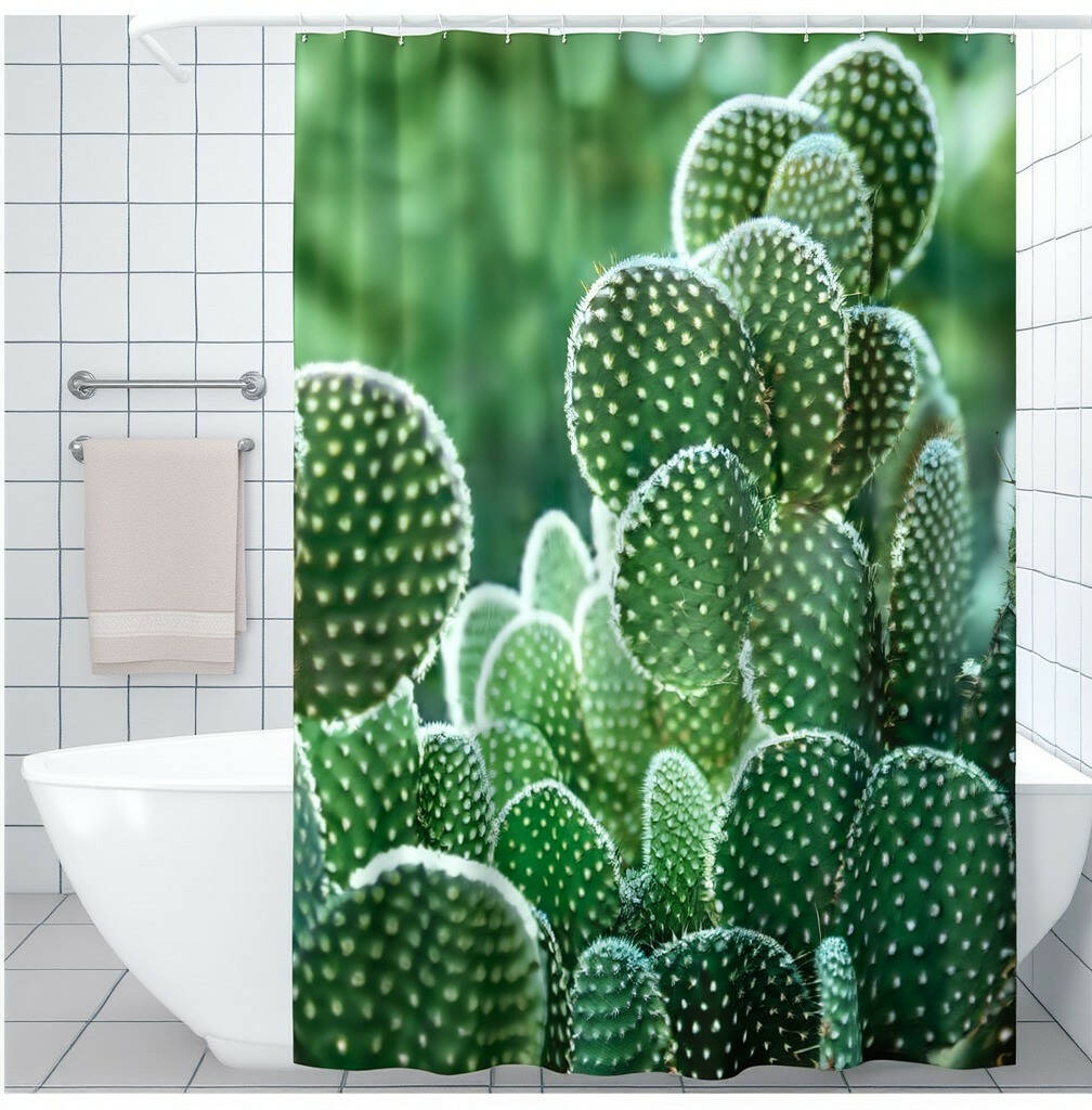 Шторка для ванної та душу з кільцями 180x180 см водовідштовхувальна, шторка для ванної та душової з гачками, принт кактуси