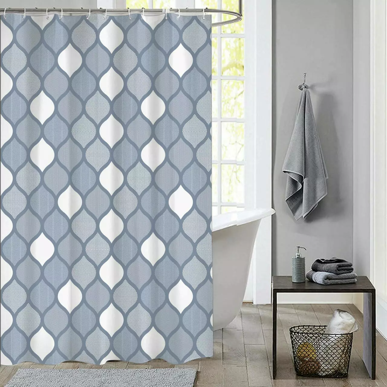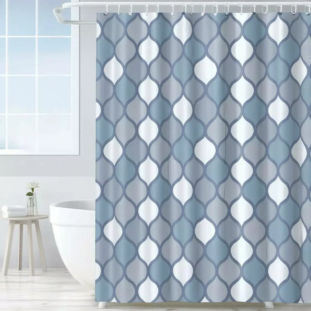 Шторка для ванної та душу з кільцями 180x180 см водовідштовхувальна, шторка для ванної та душової з гачками, сіро-блакитна