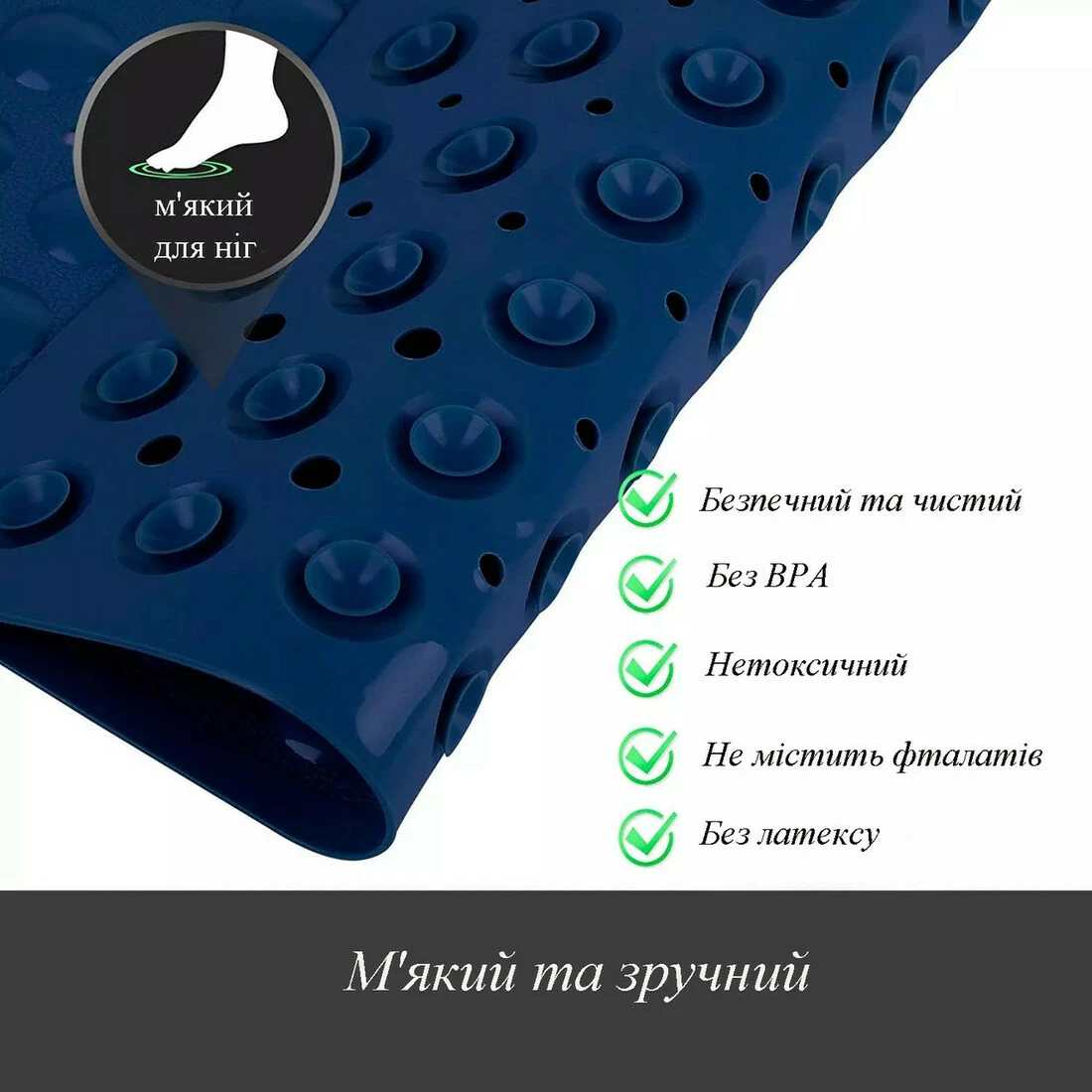 Надійно кріпиться до будь-якої поверхні ванни за рахунок великої кількості присосок. Завдяки цьому Ви точно не послизнетеся на ньому.