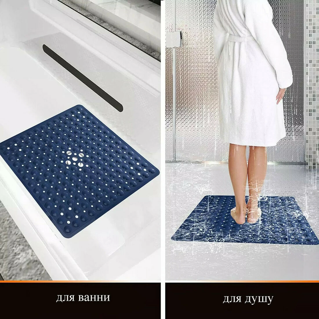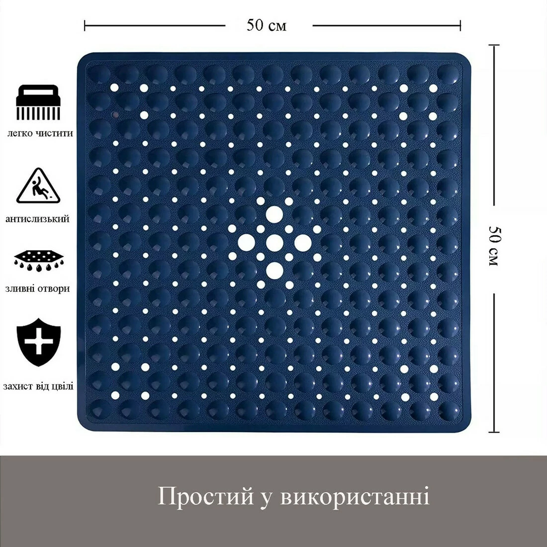 Силіконовий килимок протиковзкий Bathlux на присосках для ванни та душу, квадратний 53*53 см Синій
