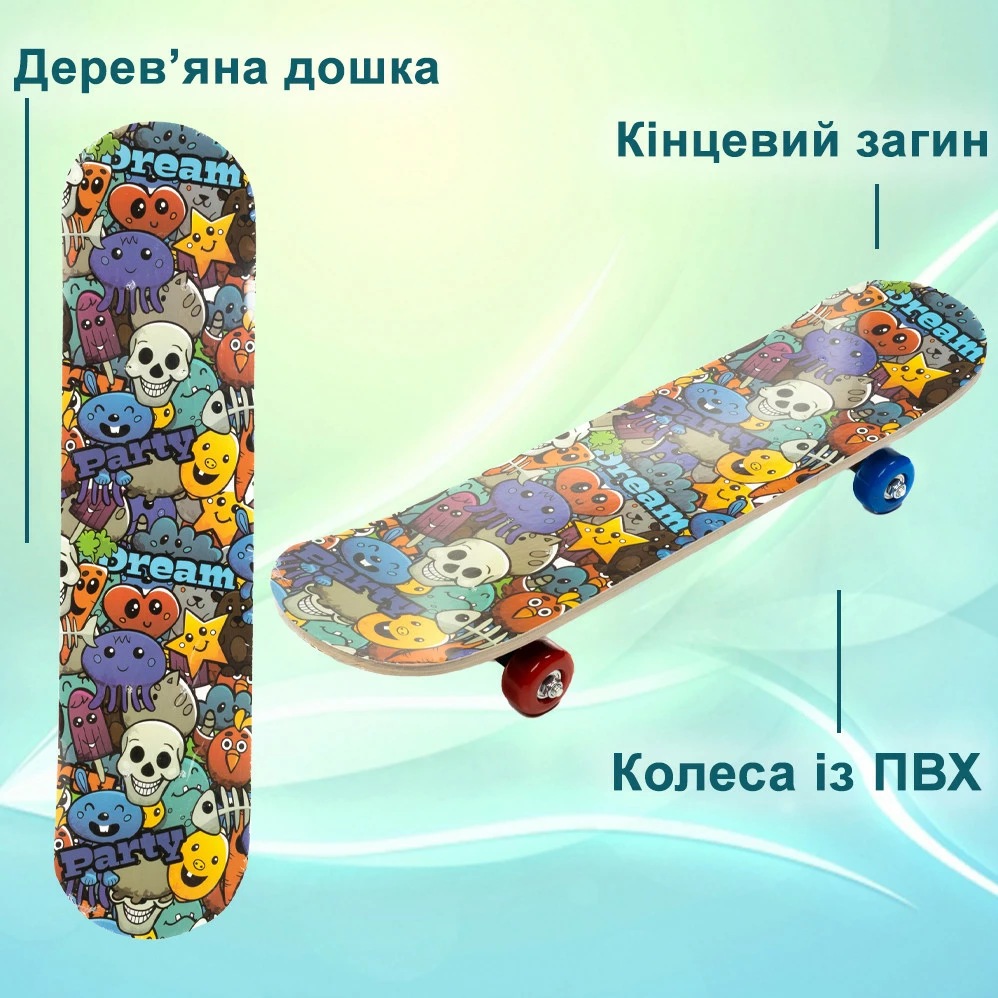 Скейт дитячий Profi MS 0323-4_2 скейтборд для дітей дерев'яний 60х15 см, пластикова підвіска, колеса ПВХ
