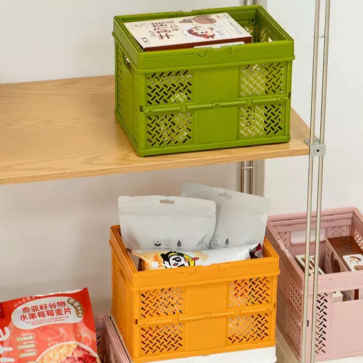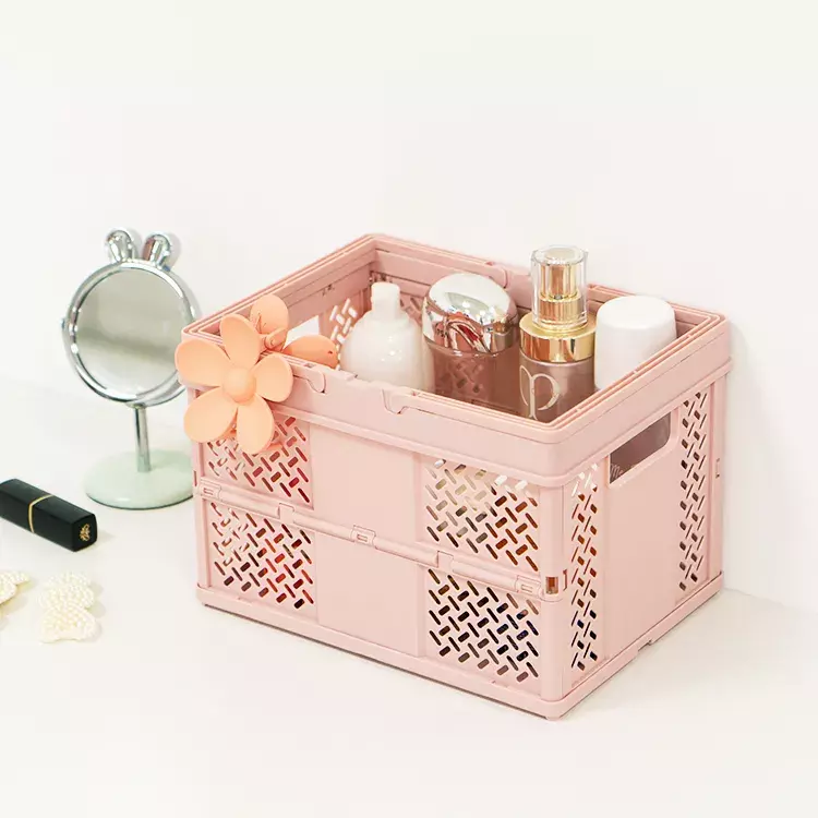 Складний кошик для зберігання з ручками, пластиковий органайзер для дрібниць, 24×18×16см, колір рожевий