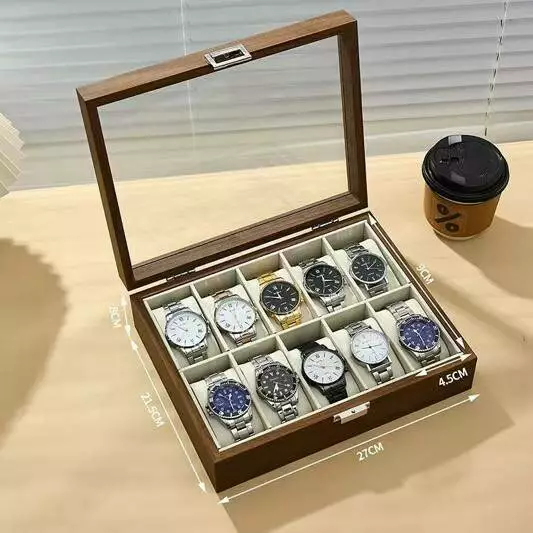 Скринька для зберігання годинників органайзер на 10 відділень дерев'яна з прозорим вікном, футляр органайзер для наручних
