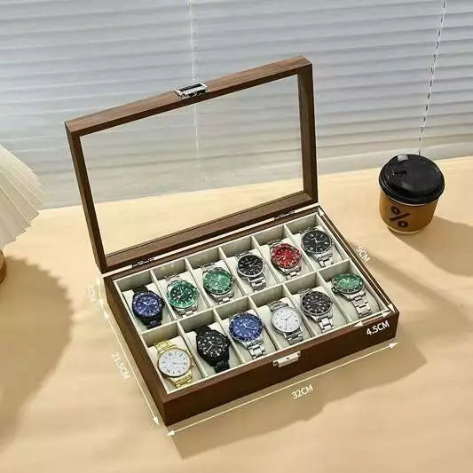 Скринька для зберігання годинників органайзер на 12 відділень дерев'яна з прозорим вікном, футляр органайзер для наручних