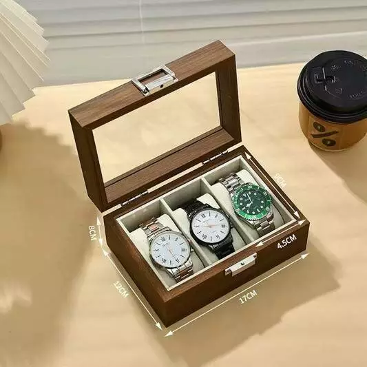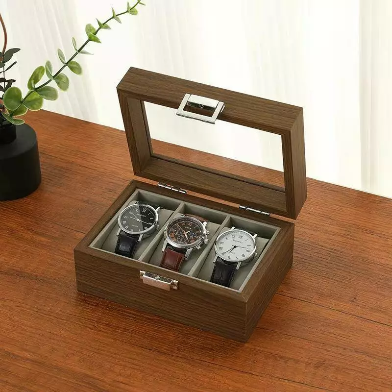 Скринька для зберігання годинників органайзер на 3 відділення дерев'яна з прозорим вікном, футляр органайзер для наручних