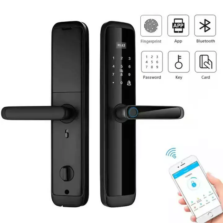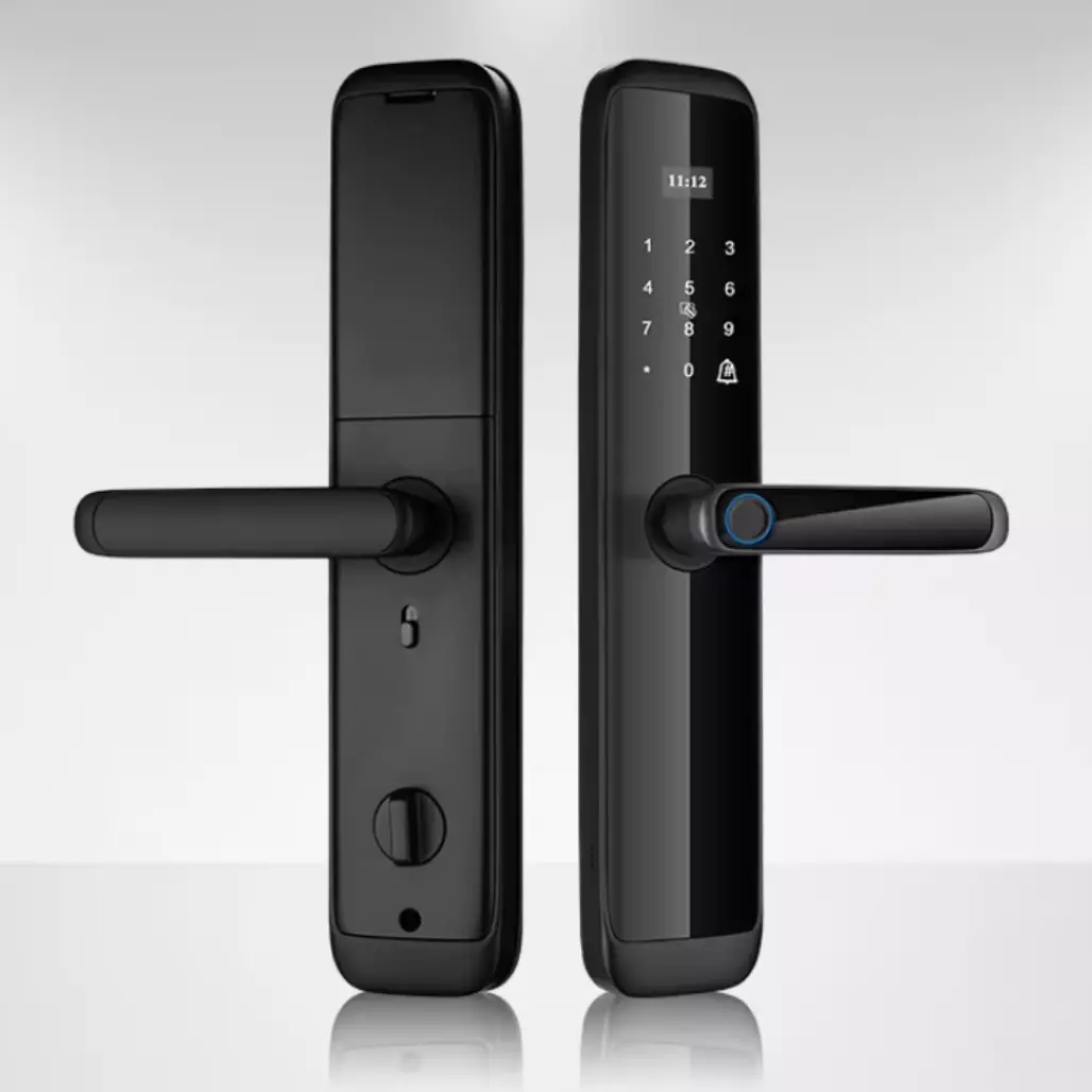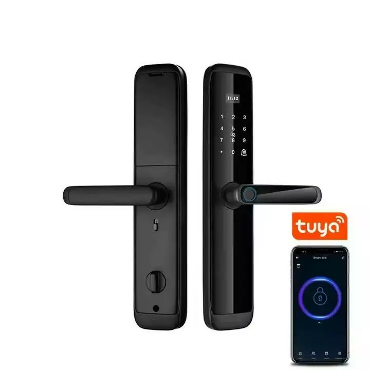 Розумний дверний замок KHS-X06 пропонує сучасні технології для захисту вашого житла. Завдяки підтримці біометричних даних, пароля та карток доступу, ви можете обирати зручний спосіб відкриття дверей. Елегантний чорний корпус з алюмінієвого сплаву стійкий до пошкоджень і надає замку стильний зовнішній вигляд. Керування через застосунок Tuya WiFi App дає змогу віддалено контролювати доступ і отримувати сповіщення про дії.