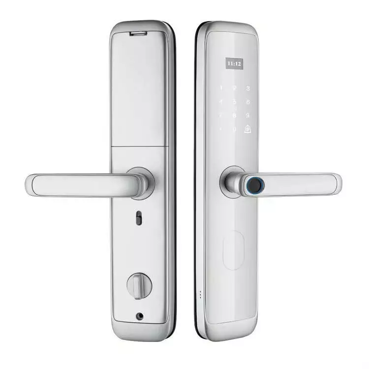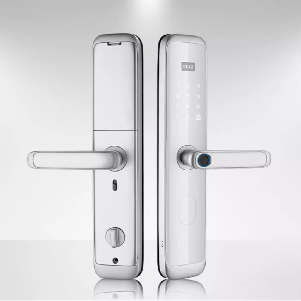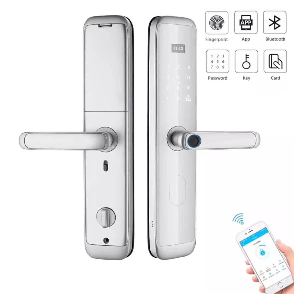 Розумний дверний замок KHS-X06 пропонує сучасні технології для захисту вашого житла. Завдяки підтримці біометричних даних, пароля та карток доступу, ви можете обирати зручний спосіб відчинення дверей. Елегантний бронзовий корпус з алюмінієвого сплаву не тільки стійкий до пошкоджень, а й надає замку стильний і благородний зовнішній вигляд. Керування через застосунок Tuya WiFi App дає змогу віддалено контролювати доступ і отримувати сповіщення про дії.