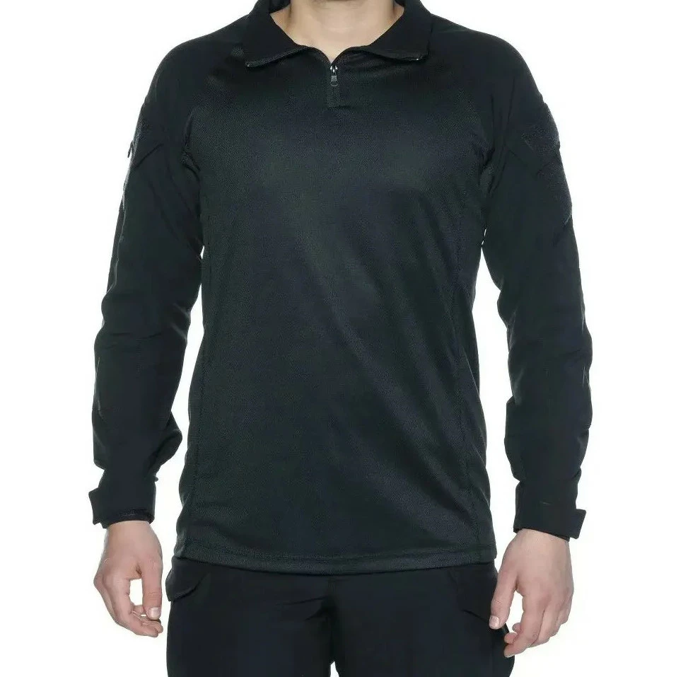 Сорочка чоловіча тактична бойова з довгим рукавом, футболка армійська для військових та армії ЗСУ, Чорний M