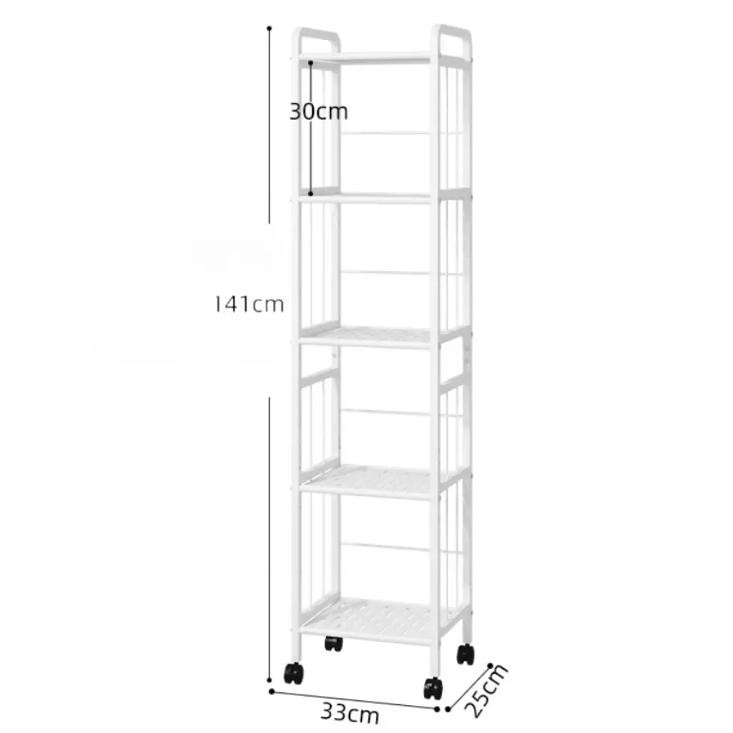 Стелаж для комори, ванної кімнати, кухні полиця підлогова пересувна на колесах 5 ярусів 33х25х141 см