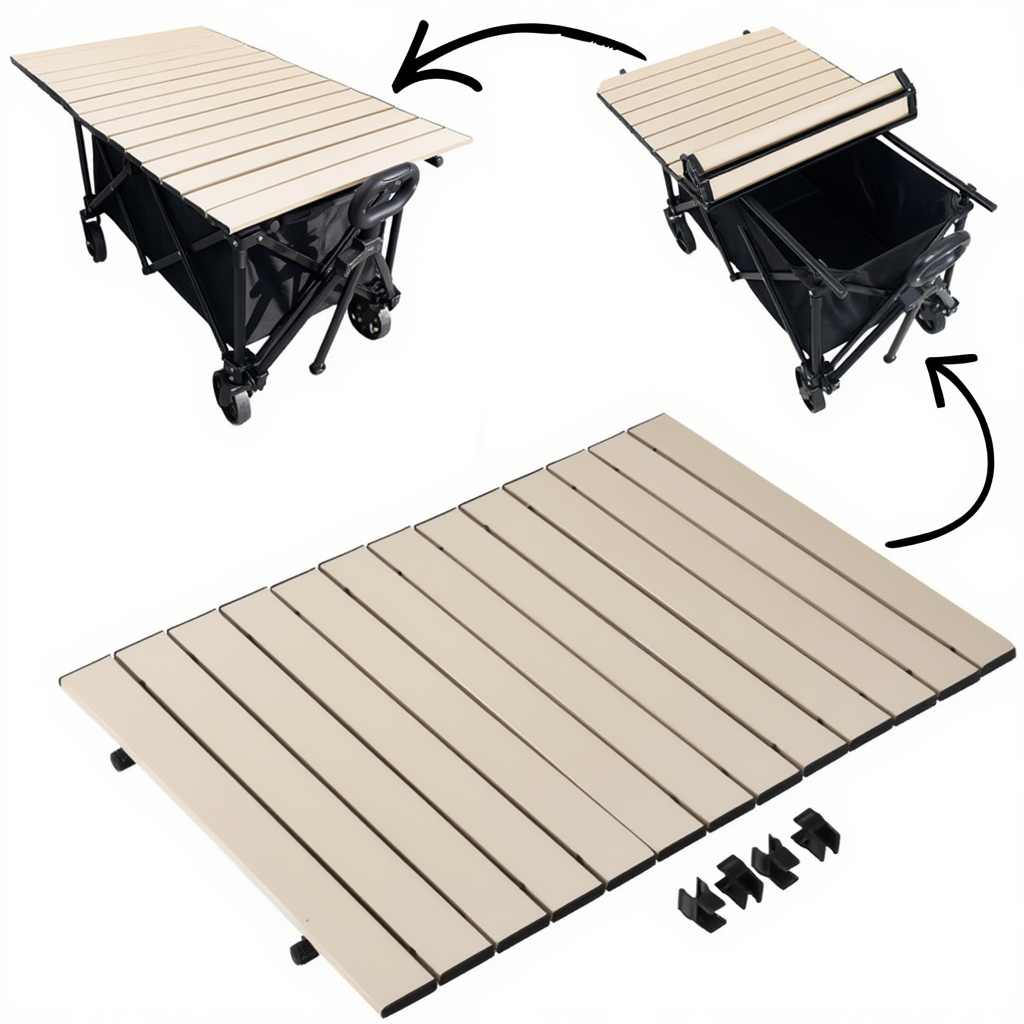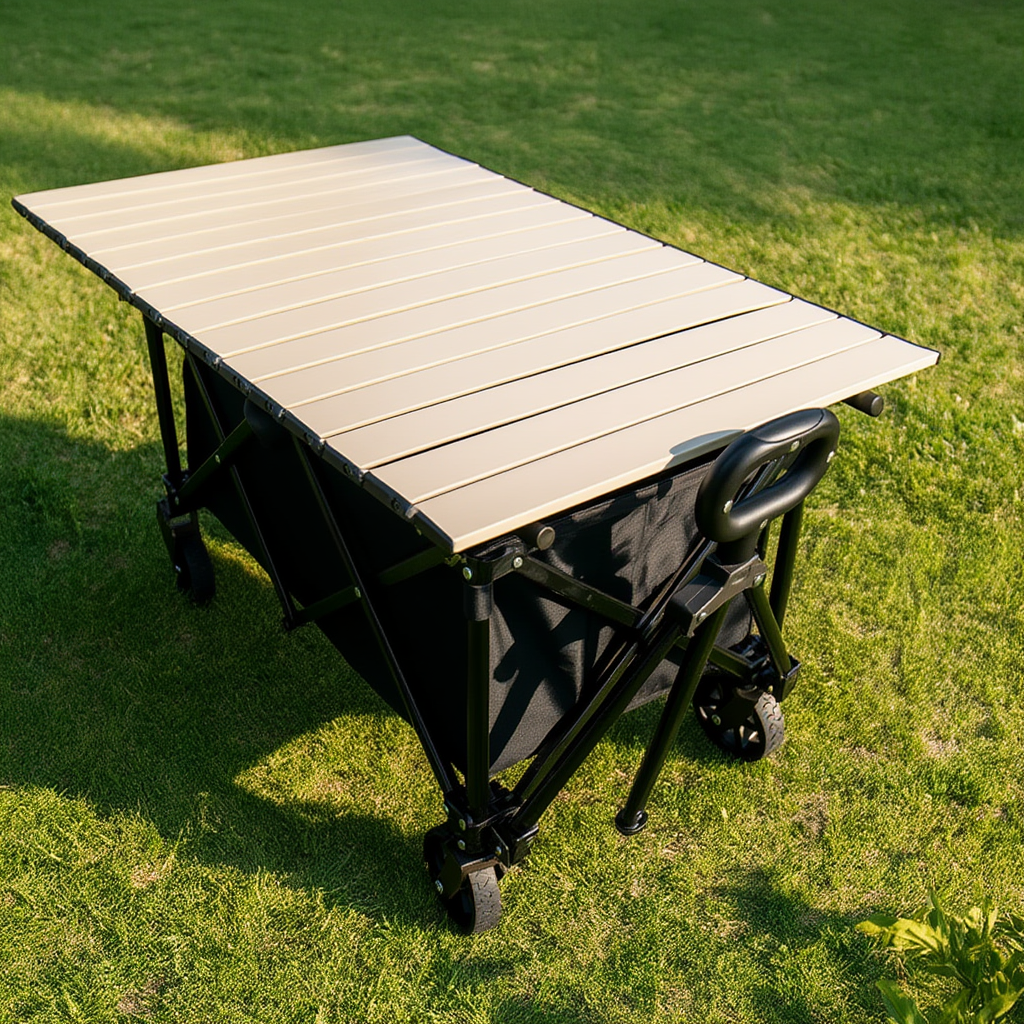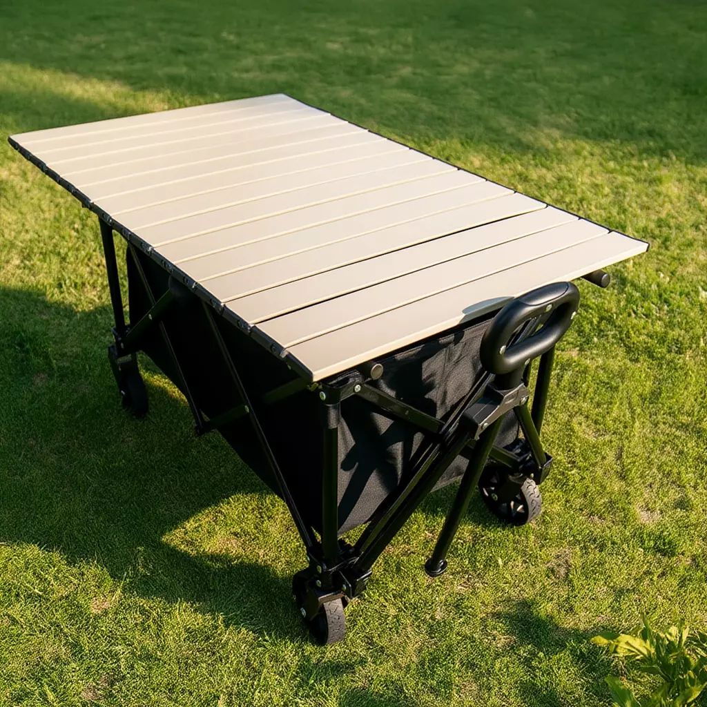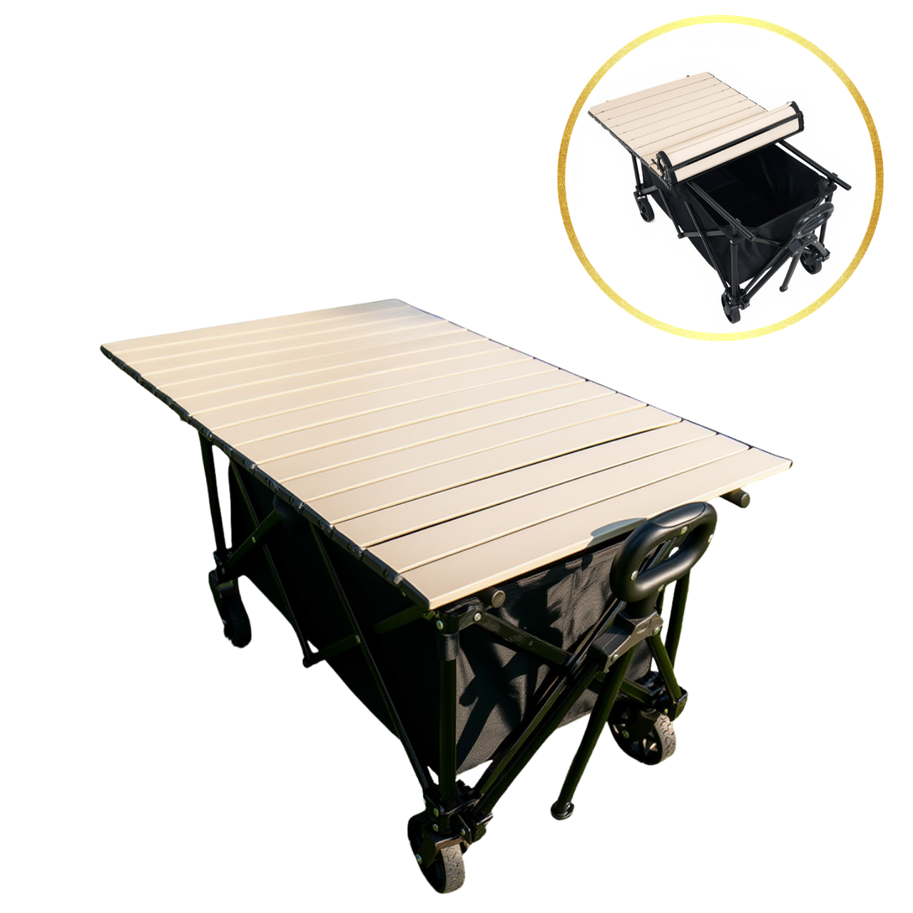 кемпінгову тележку і перетворює її на зручний мобільний стіл для