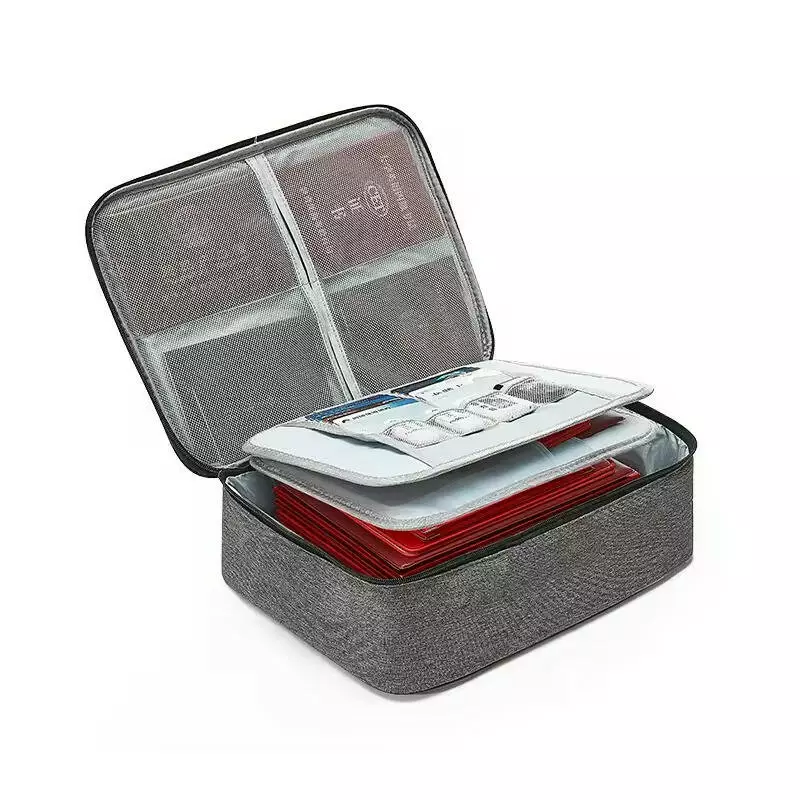Ця сіра сумка для документів забезпечує надійний захист завдяки своєму водонепроникному матеріалу. З 3 відділеннями вона ідеально підходить для організації та зберігання ваших важливих паперів, паспортів і карт.