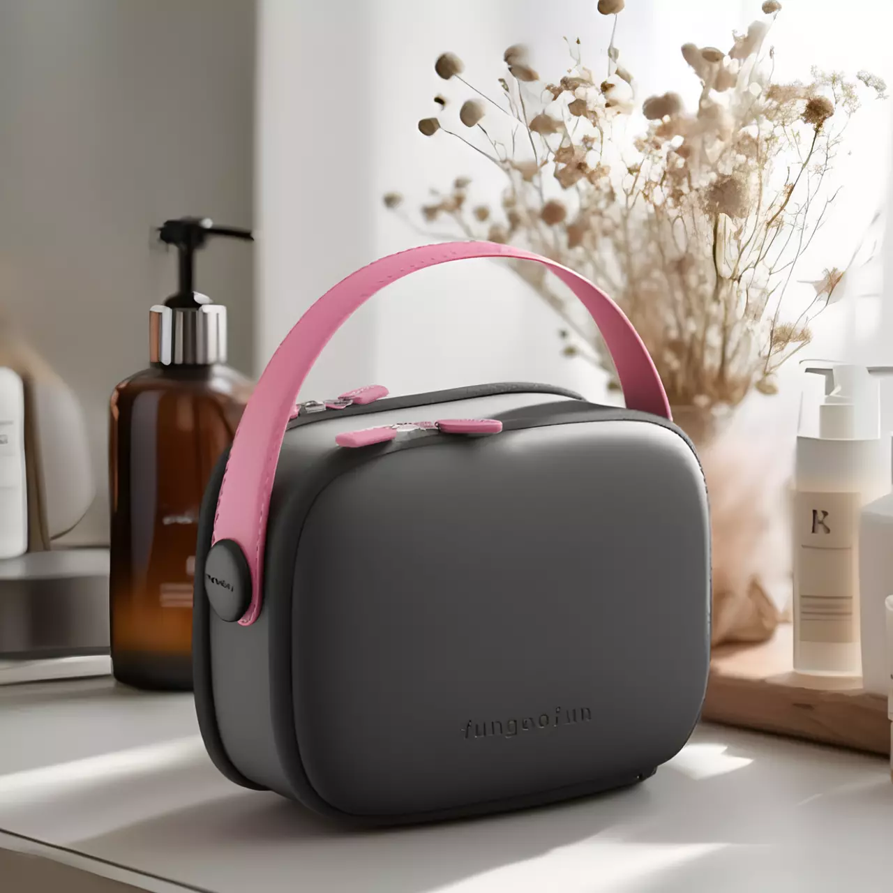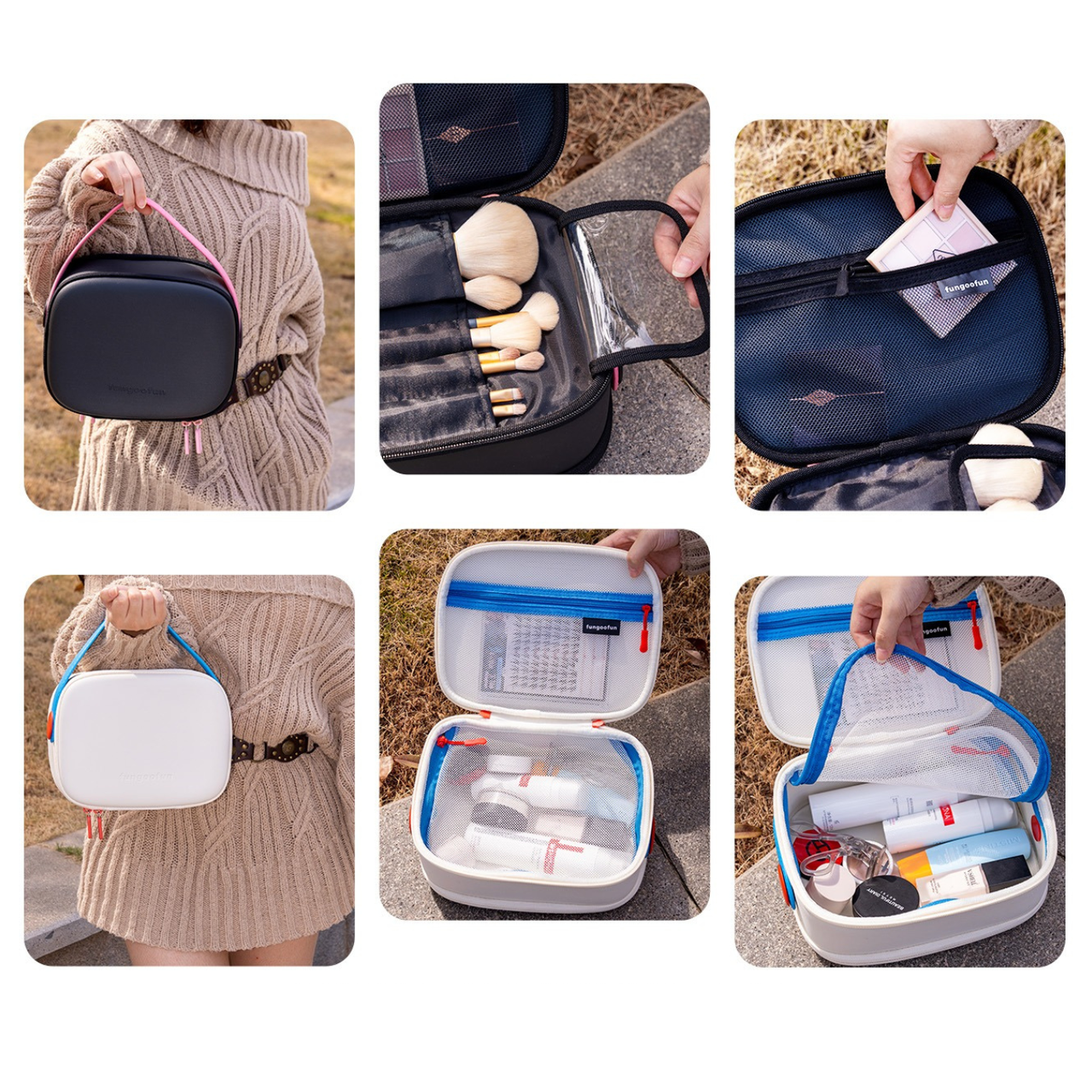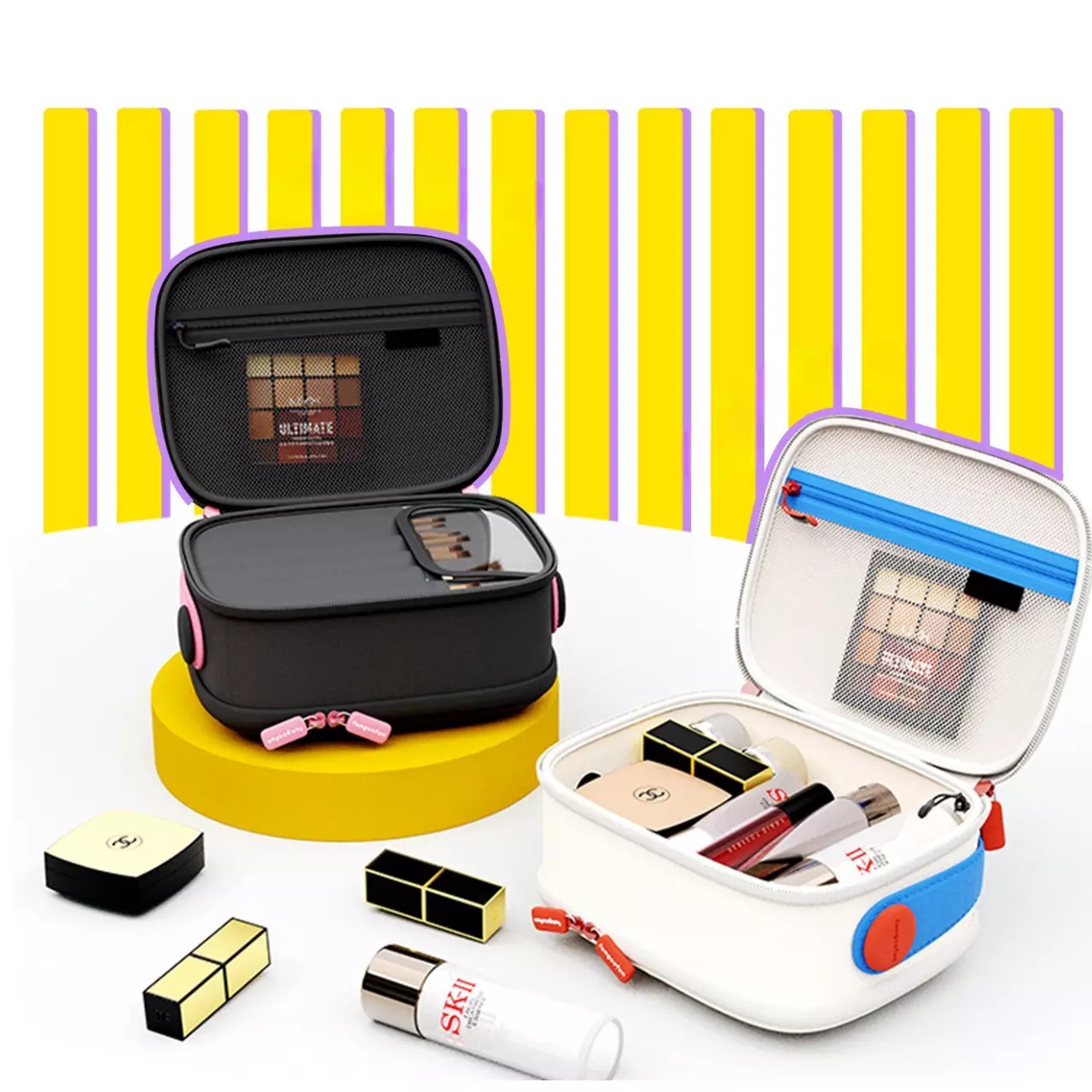 Косметичка виготовлена з водовідштовхувального матеріалу EVA, який захищає вміст від вологи та забруднень. Легко миється та швидко очищується, що робить її зручною для щоденного використання. Жорстка форма забезпечує надійний захист від пошкоджень, а внутрішня організація з відділеннями дозволяє акуратно розмістити всі необхідні аксесуари.