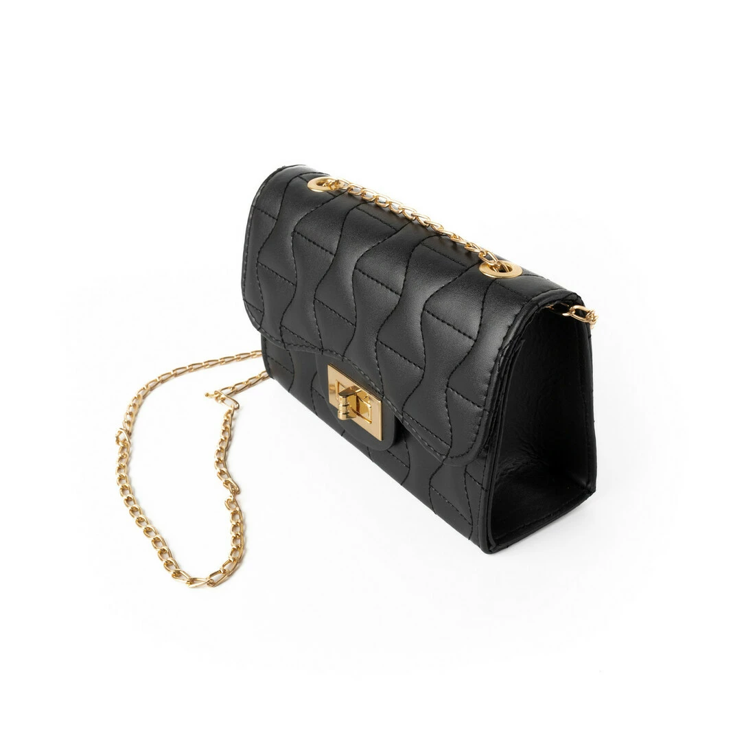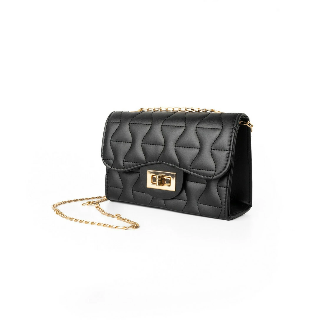 Сумка жіноча через плече, сумочка клатч зі стьобаним візерунком і ручкою-ланцюжком, Черный