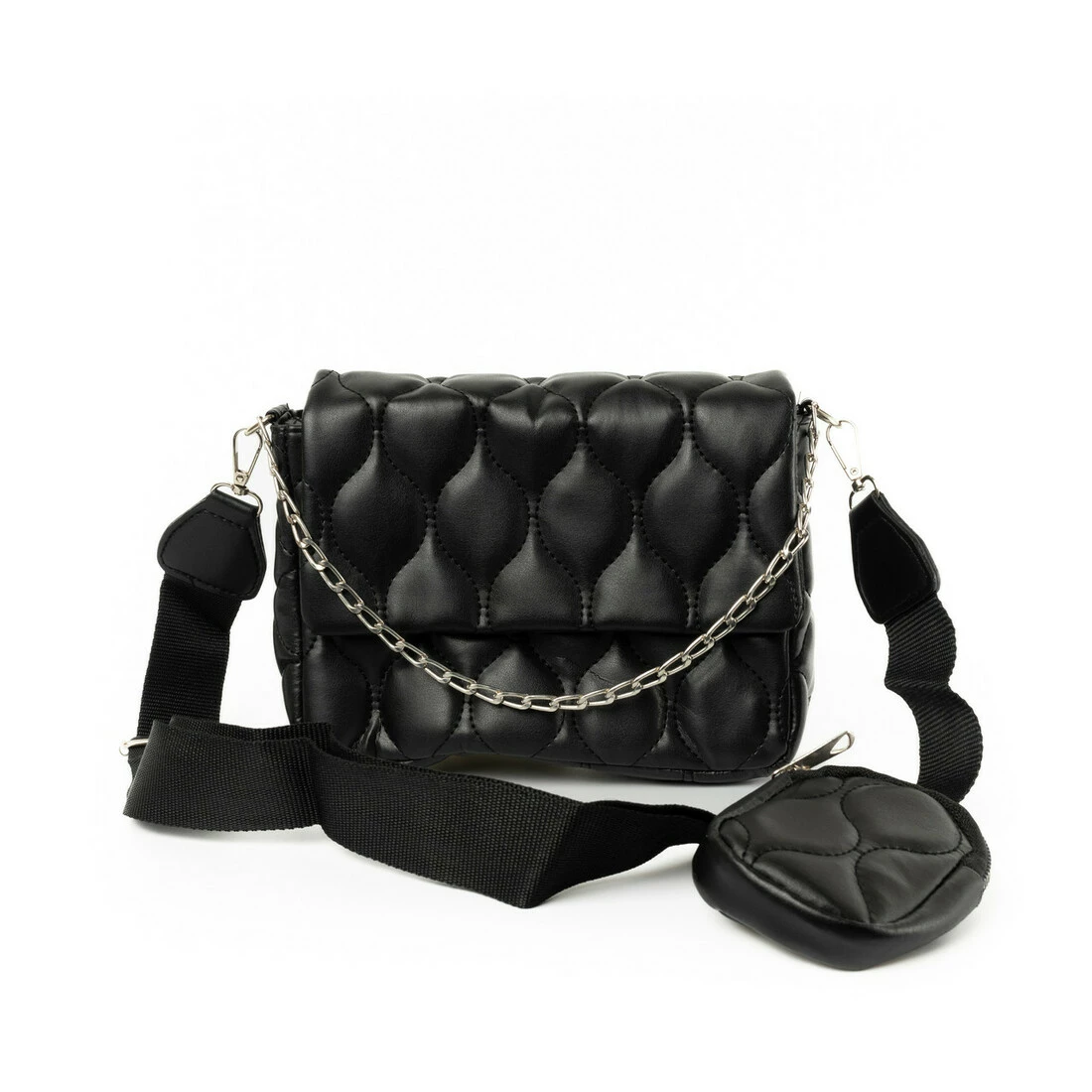 Сумка жіноча через плече зі стьобаним візерунком, модна сумочка з ланцюжком і ремінцем, Чорний