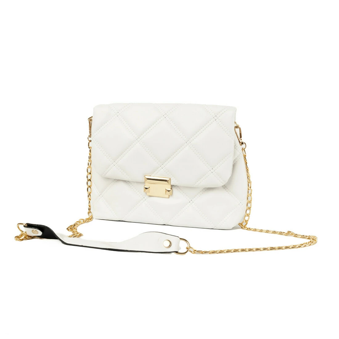 Сумка жіноча елегантна з якісного стьобаного шкірозамінника і довгою ручкою-ланцюжком, Білий