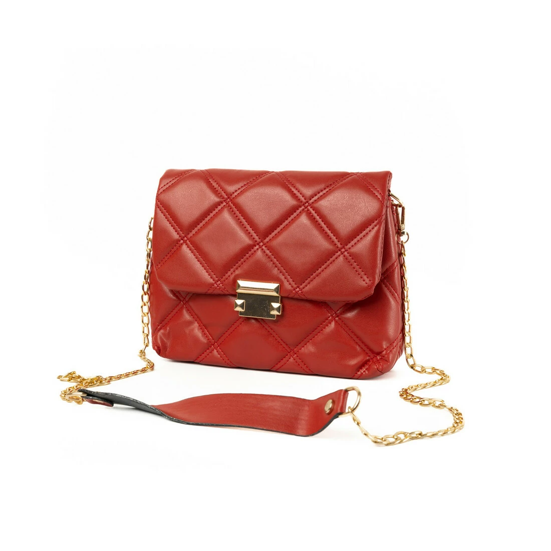 Сумка жіноча елегантна з якісного стьобаного шкірозамінника і довгою ручкою-ланцюжком, Червоний