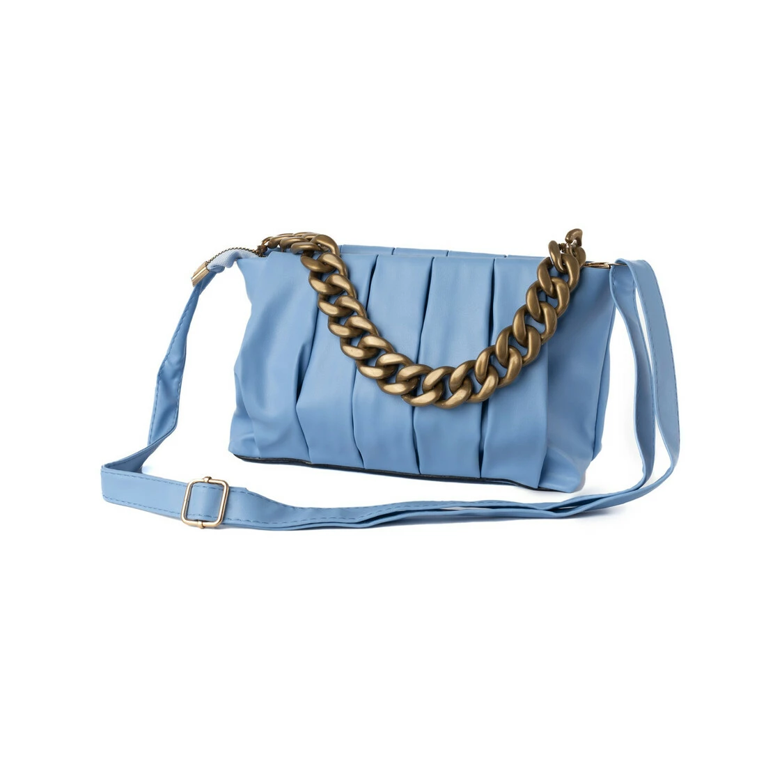 Сумка жіноча стильна літня через плече з ручкою ланцюжком та знімним регульованим ремінцем, Блакитний