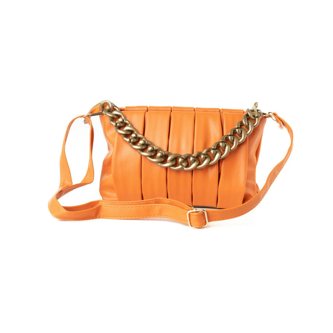 Сумка жіноча стильна літня через плече з ручкою ланцюжком та знімним регульованим ремінцем, Помаранчевий