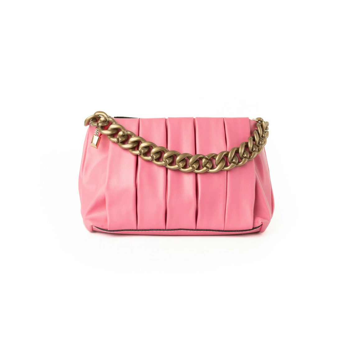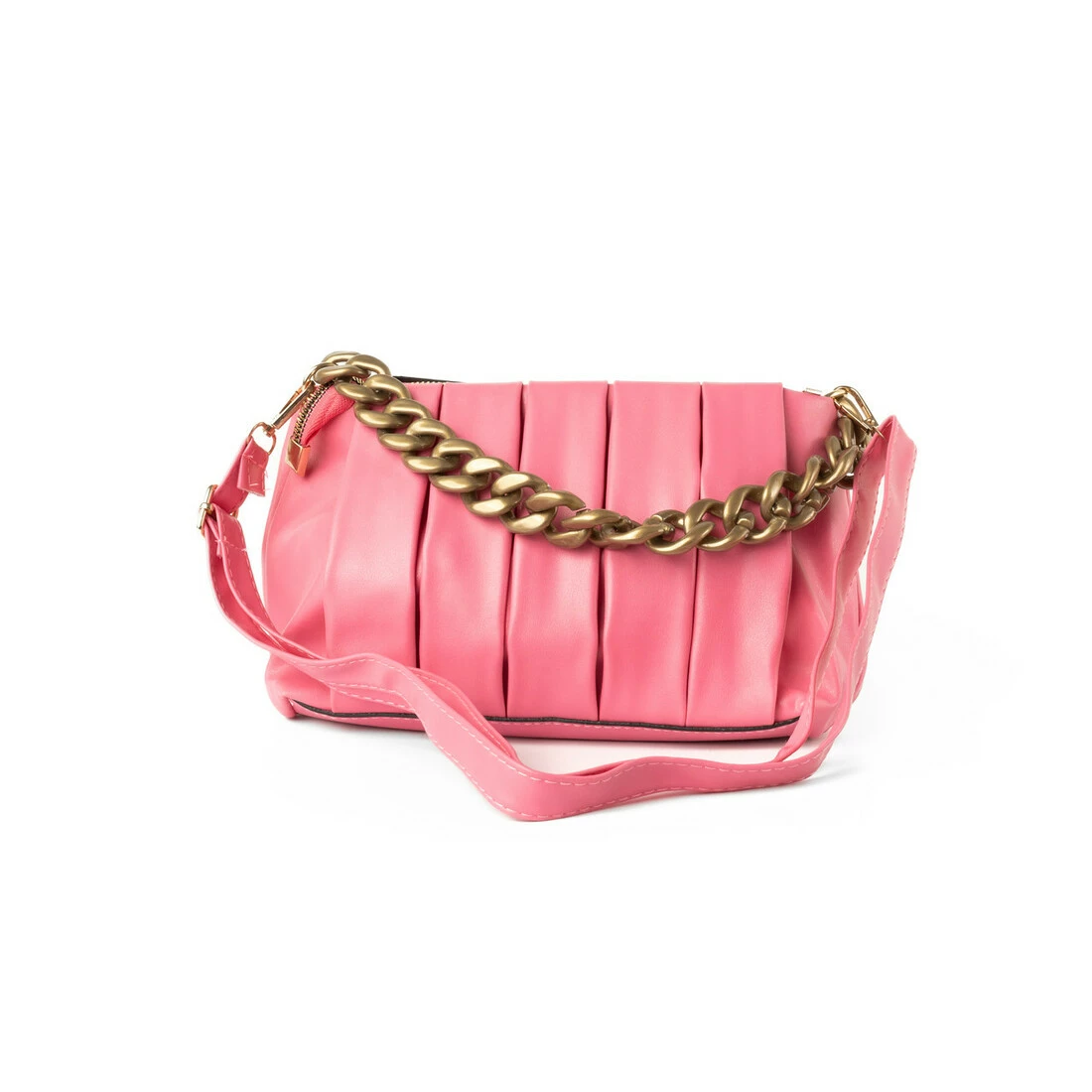 Сумка жіноча стильна літня через плече з ручкою ланцюжком та знімним регульованим ремінцем, Рожевий