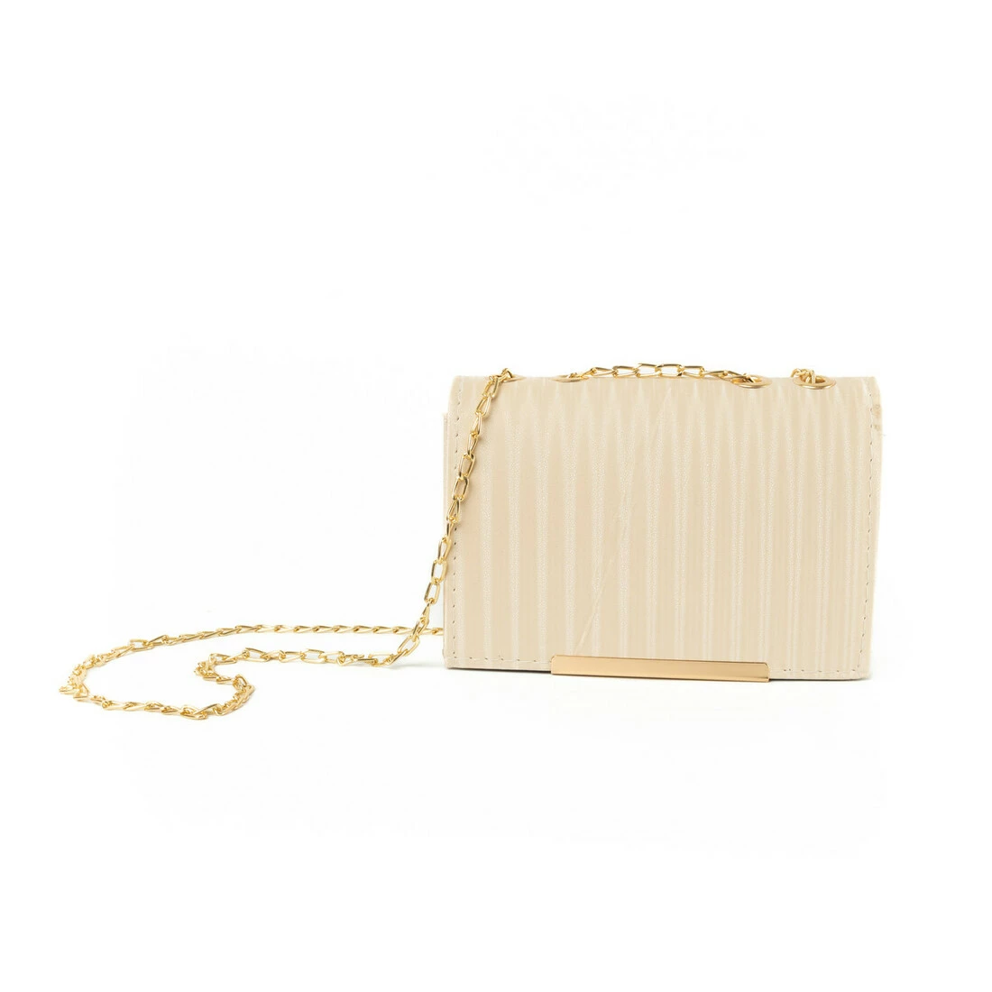 Сумка жіноча стильна маленька через плече на ланцюжку, сумочка клатч вечірній, Молочний