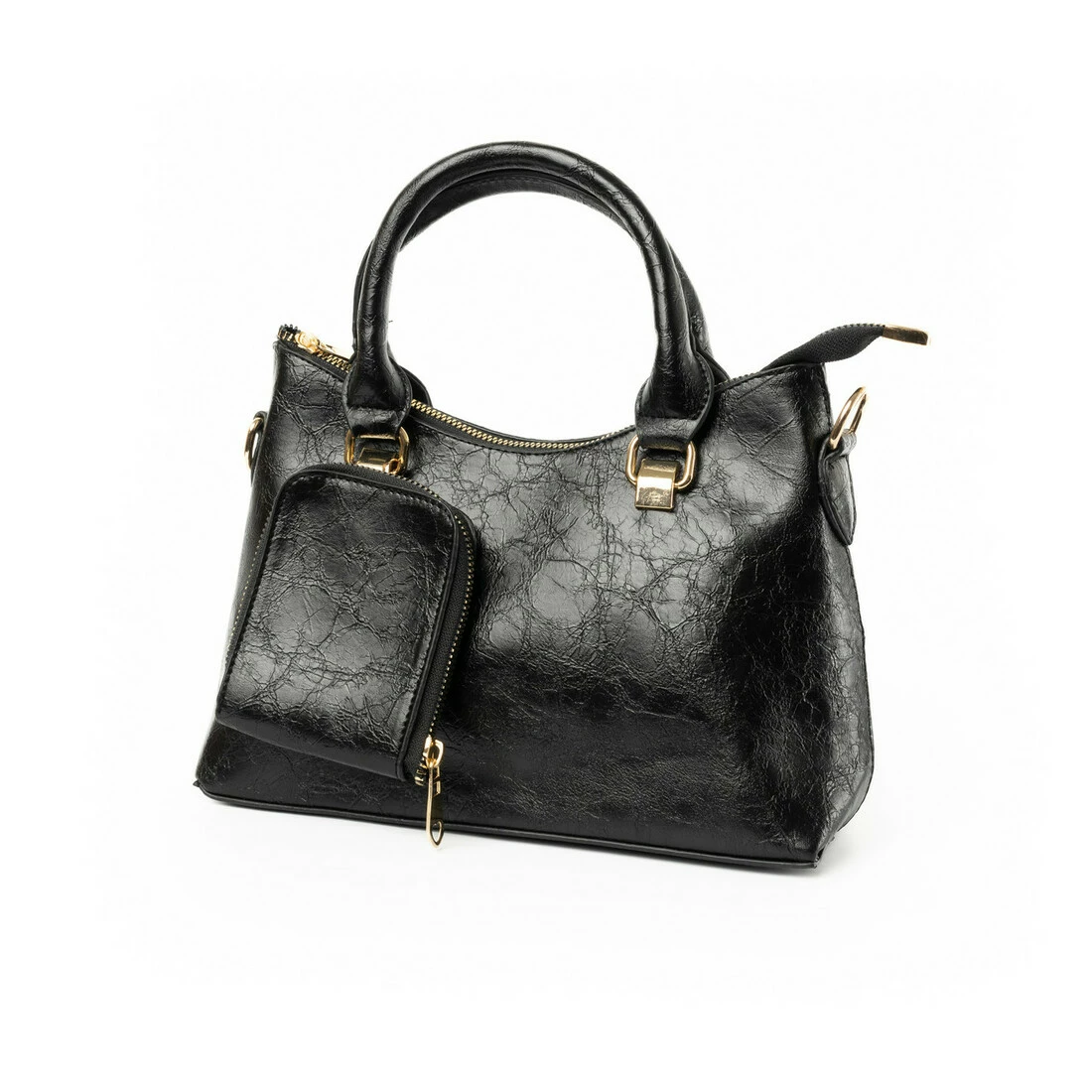 Сумка жіноча стильна містка на блискавці з якісної екошкіри з ручкою та плечовим ремінцем, Чорна