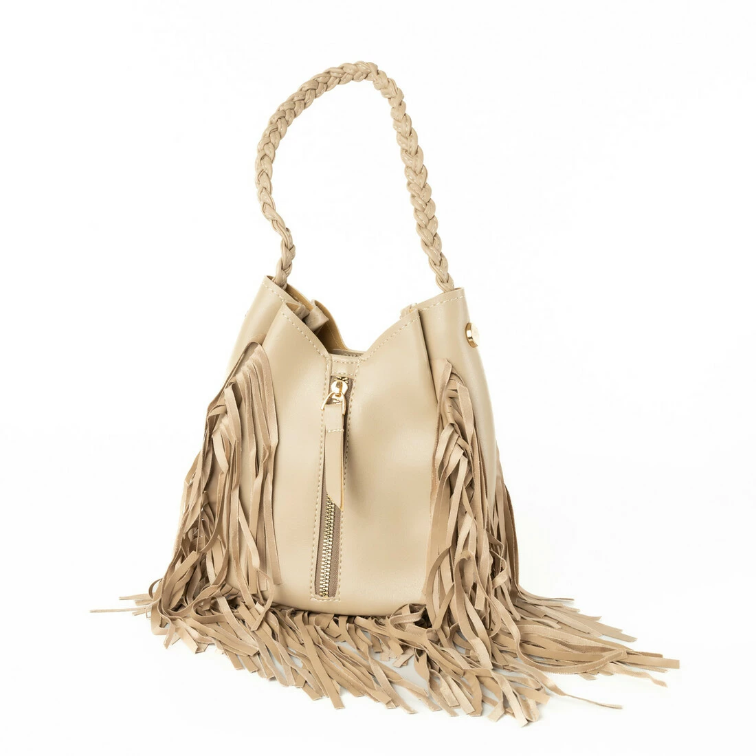 Сумка жіноча стильна з бахрамою із якісної штучної шкіри, Бежевий