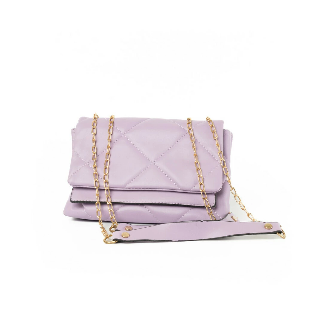 Сумка жіноча з якісної штучної шкіри зі стьобаним візерунком та ручкою-ланцюжком, Бузковий