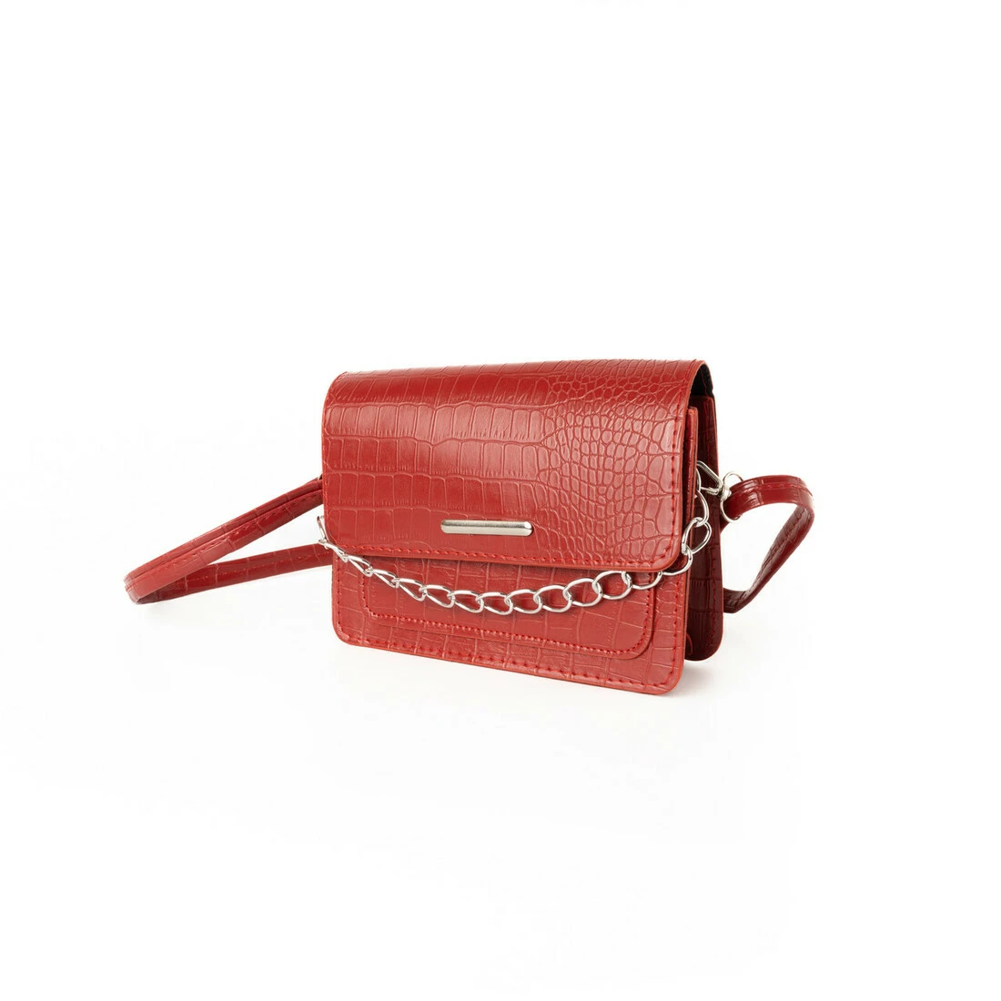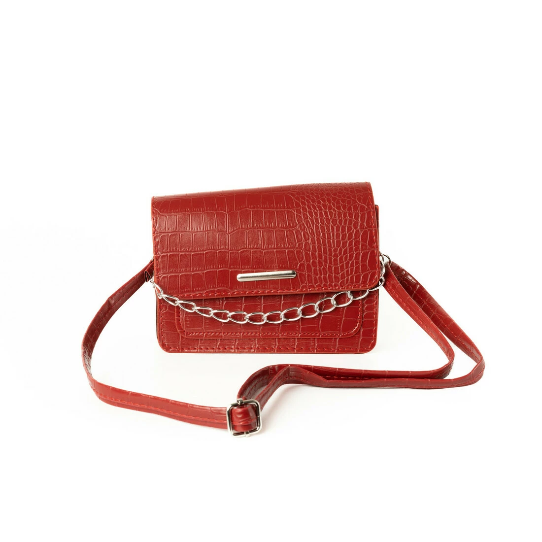 Сумка жіноча зі штучної шкіри "під крокодила", з ланцюжком і ремінцем, маленька сумочка клатч, Червоний
